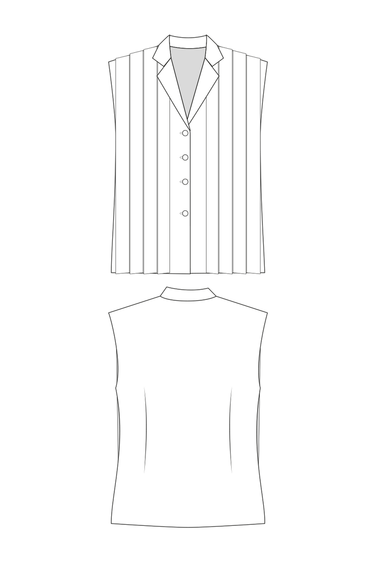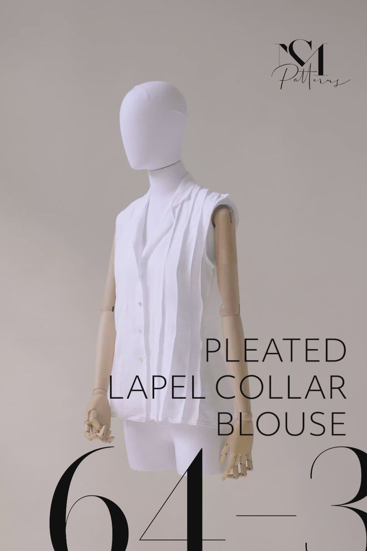 The Lapel Blouse 64-3 features a stylish lapel collar and a button panel on the front. The main design feature however are the pleats along the front, that let it stand out.