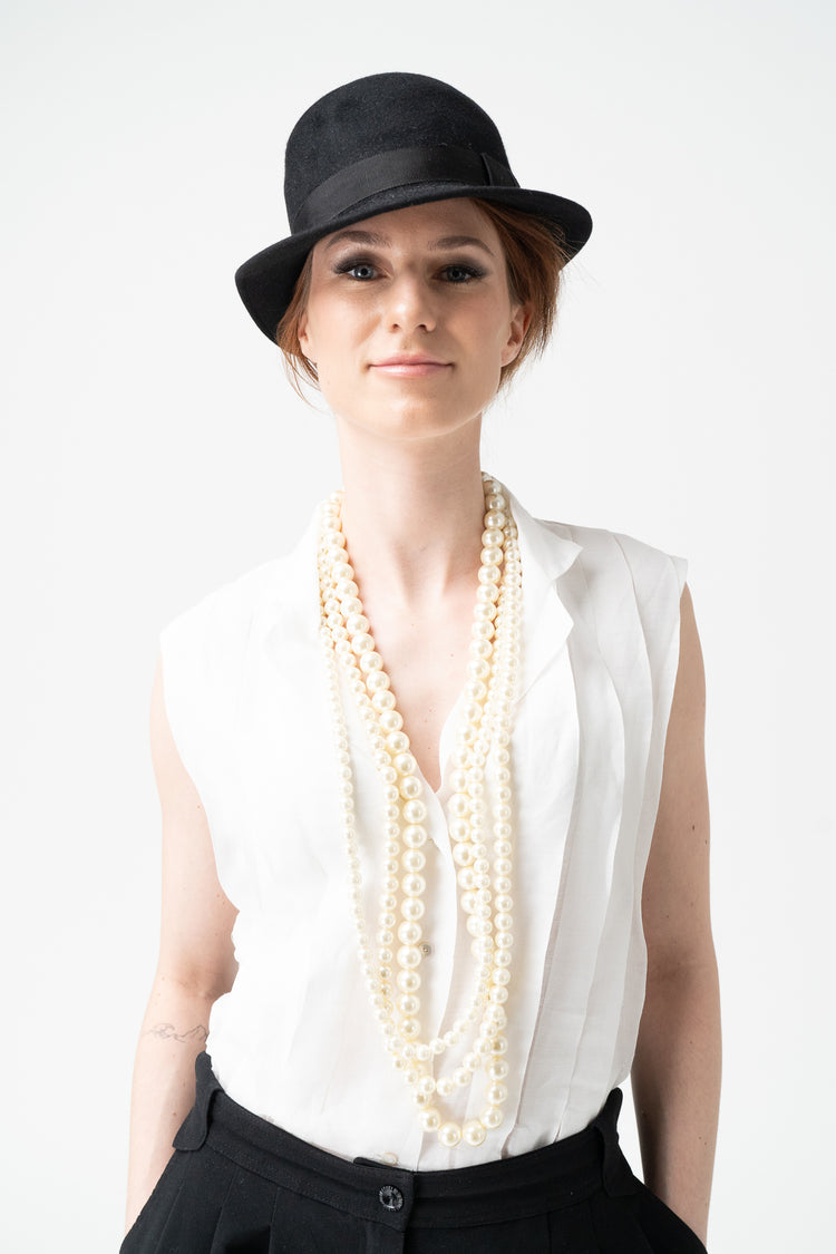 This sewing pattern is tailored for intermediate sewists who are eager to take on a fulfilling challenge. With detailed instructions and careful guidance, you'll delight in bringing this blouse to life. It features felled seams for a more durable blouse, the lapel collar construction, the armholes are finished with bias tape.