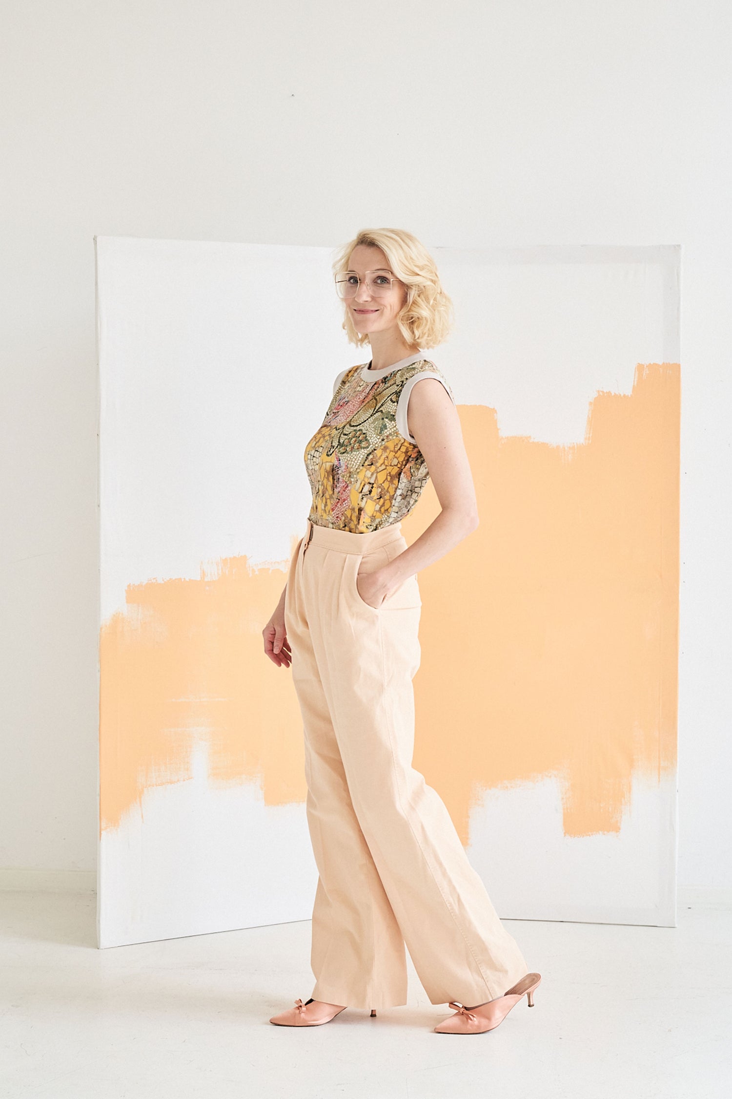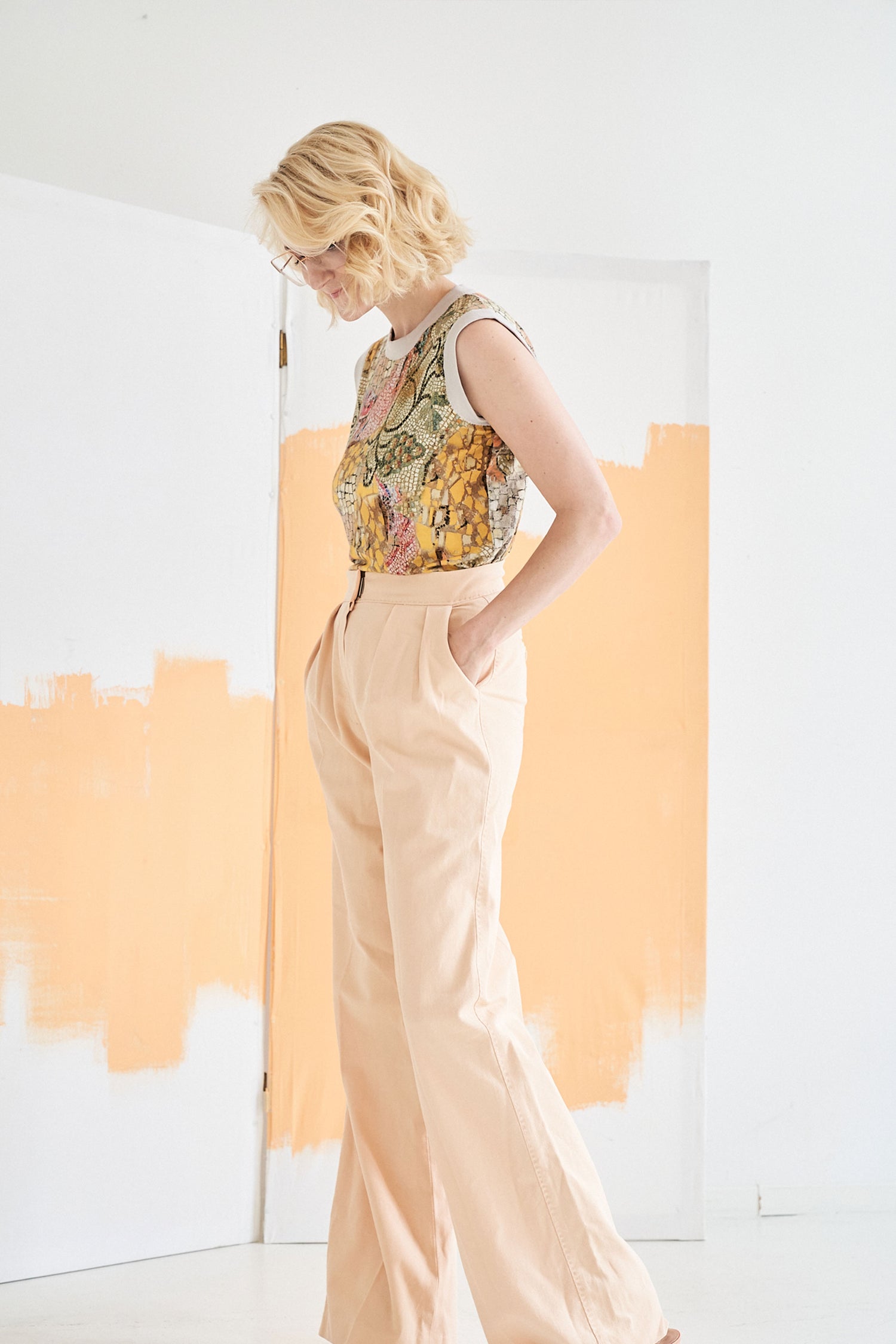 Elevate your wardrobe with the 40-3 APRICOT Pleated High-Rise Wide Trousers, a classic design that combines comfort with sophistication. Featuring a flattering high waistband and elegant pleats, these trousers create a refined and elongated silhouette. The wide-leg cut offers freedom of movement, while maintaining a chic and structured look.