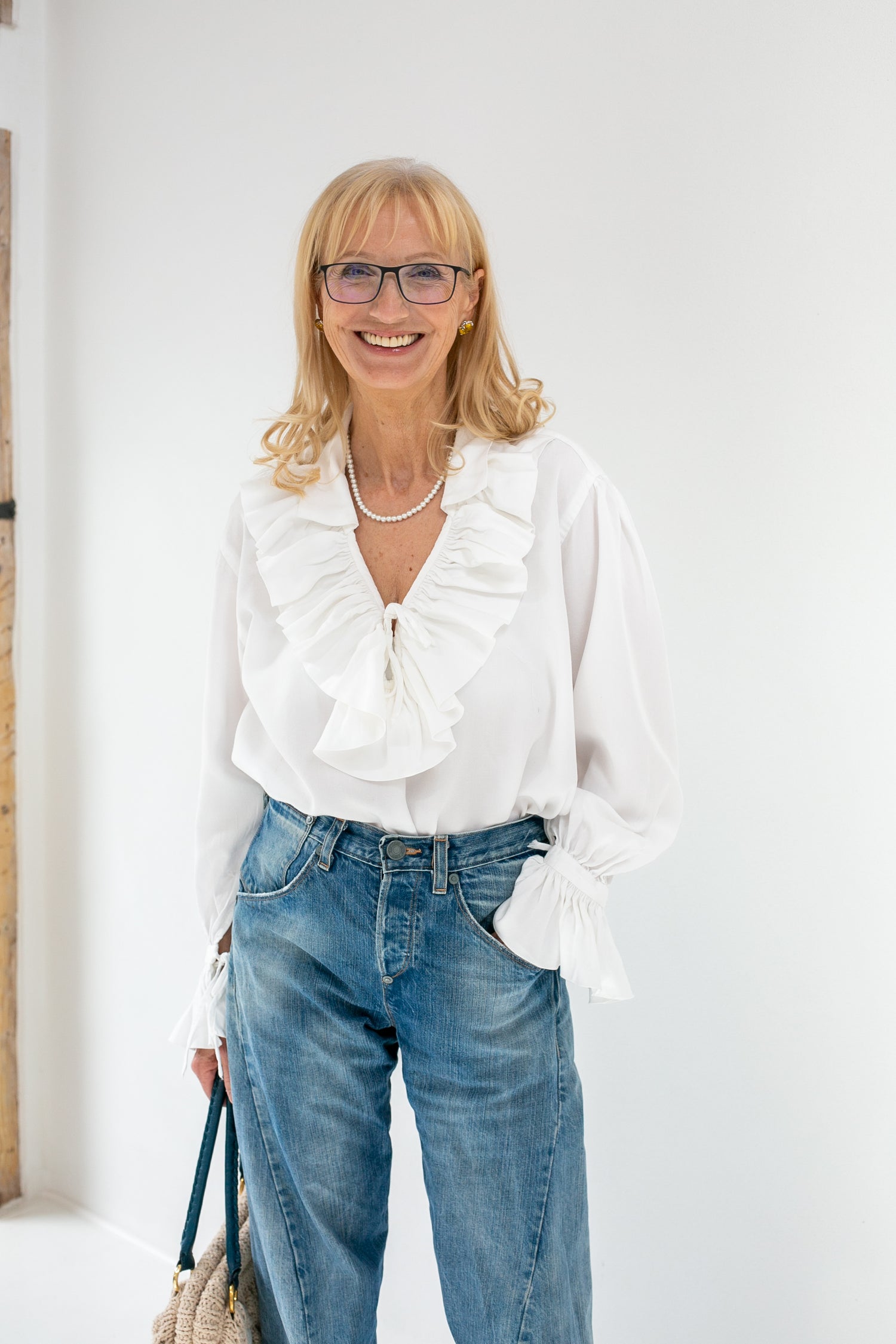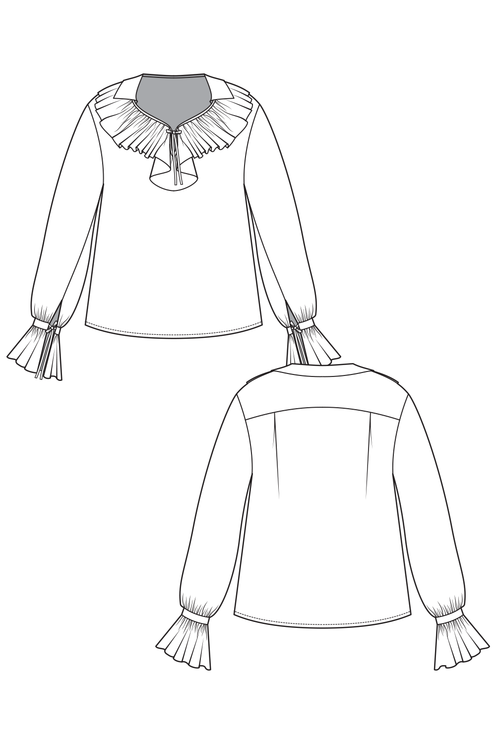 Romantic ruffles meet effortless elegance: The 60-8 WHISPER blouse is a wide, flowing piece designed for soft, drapey fabrics like viscose or silk. Its dreamy silhouette and feminine details make it ideal for festive occasions or elevated everyday wear. With delicate ruffles at the neckline and sleeves, a yoke constructed using the Burrito Method, and soft gathers at the back and cuffs, this blouse is as enjoyable to sew as it is to wear.