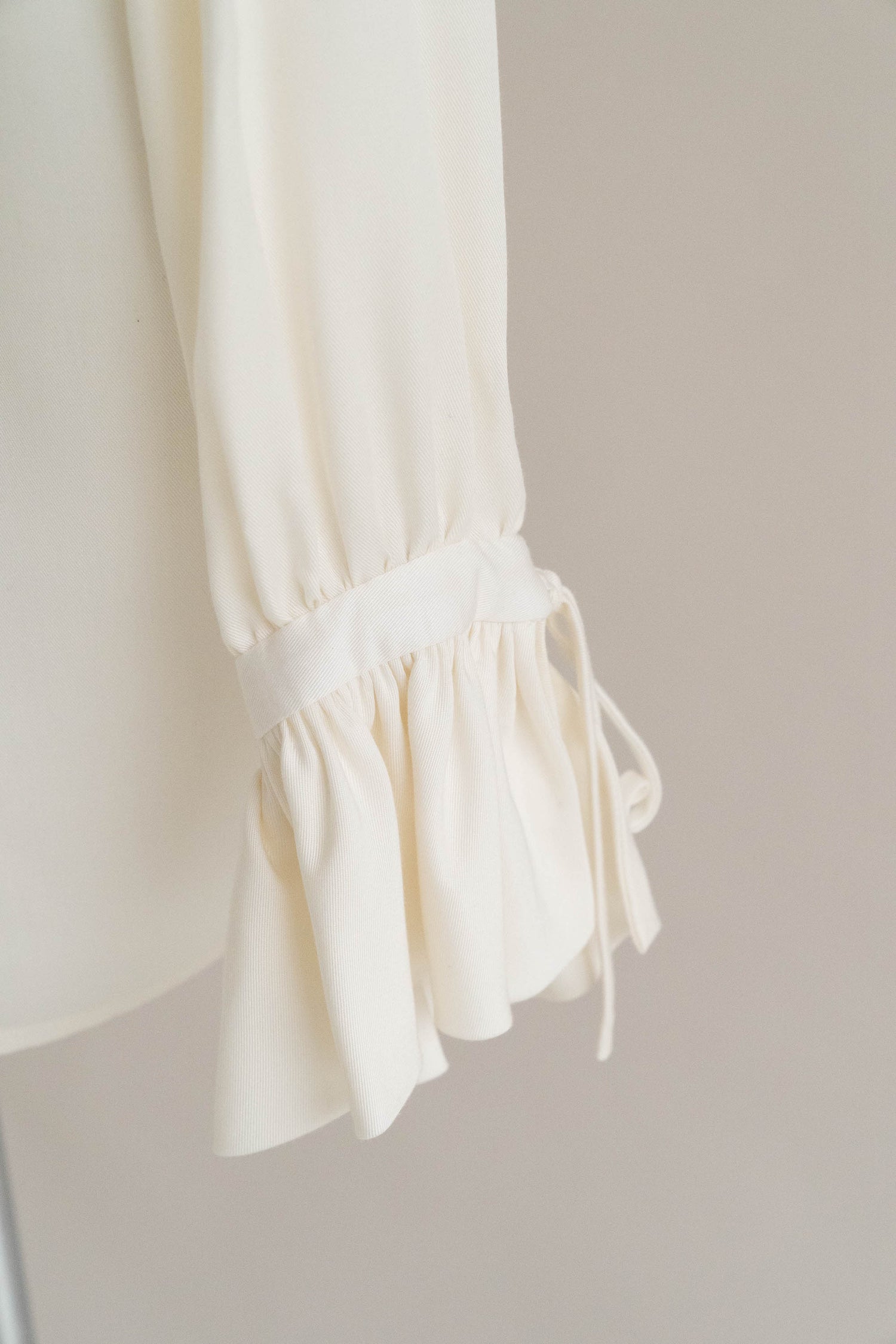 • Statement sleeve cuffs with ruffles: Two ruffle layers gathered into shaped cuffs, complete with tie details.