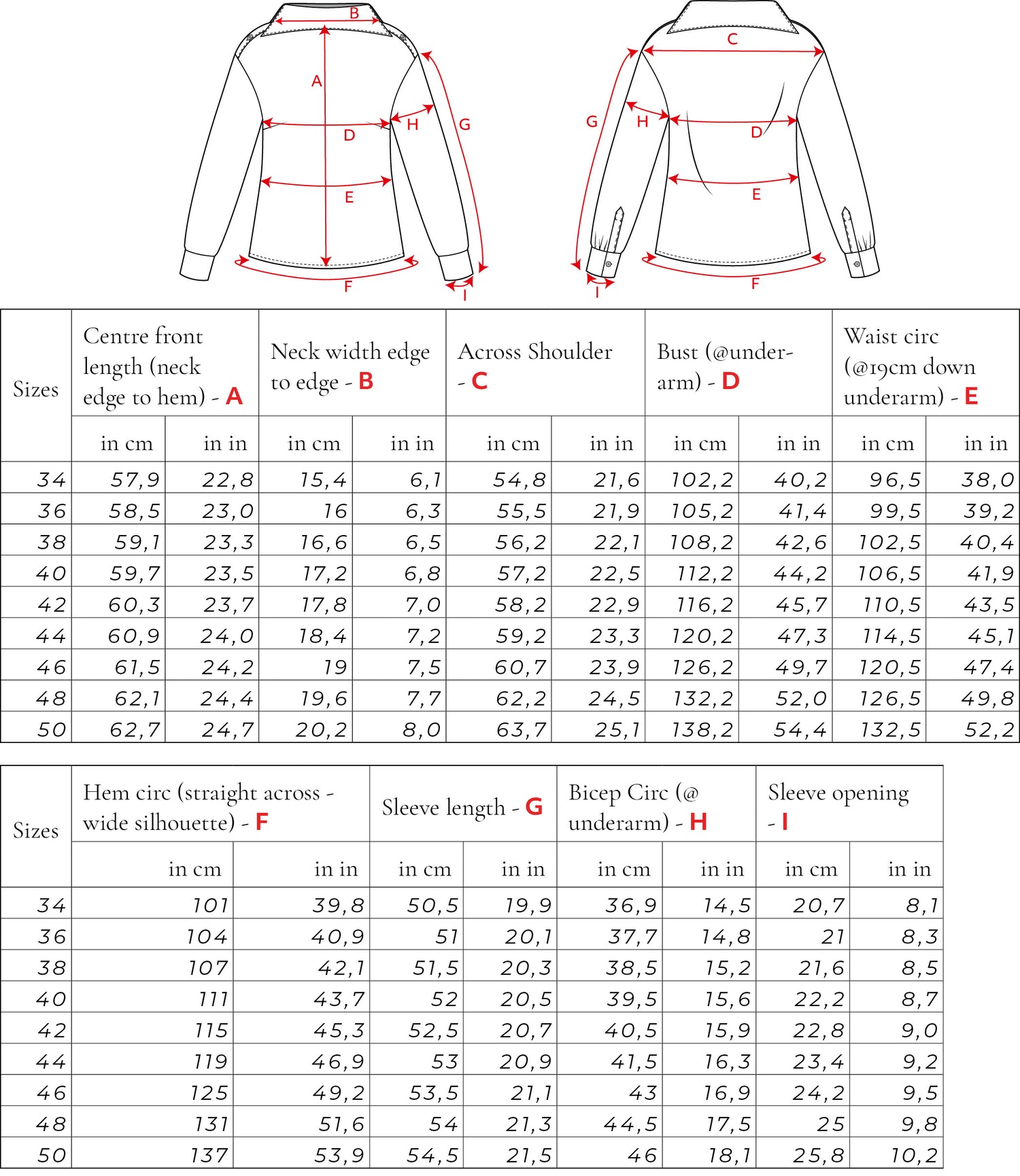 Size Chart for women clothing Size Chart Sizes 34-50 for sisterMAG Patterns