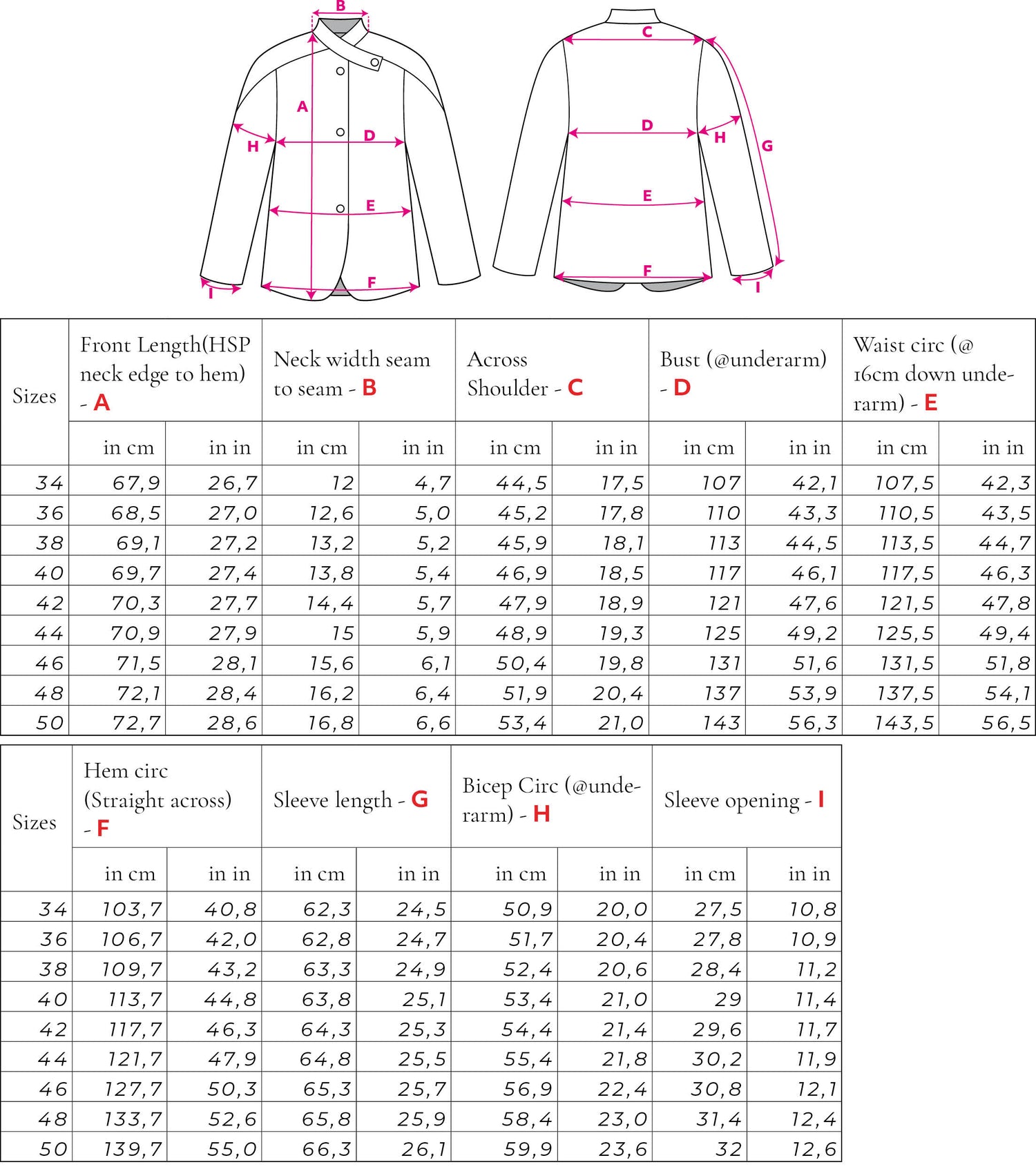 Size Chart for women clothing Size Chart Sizes 34-50 for sisterMAG Patterns