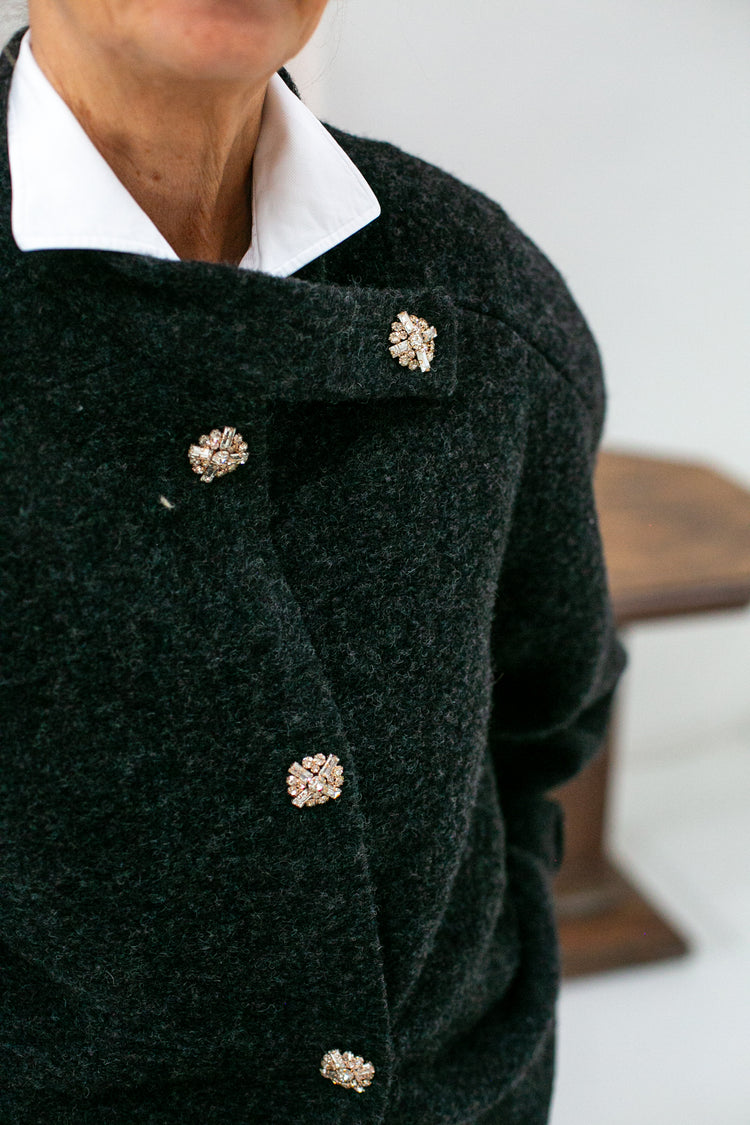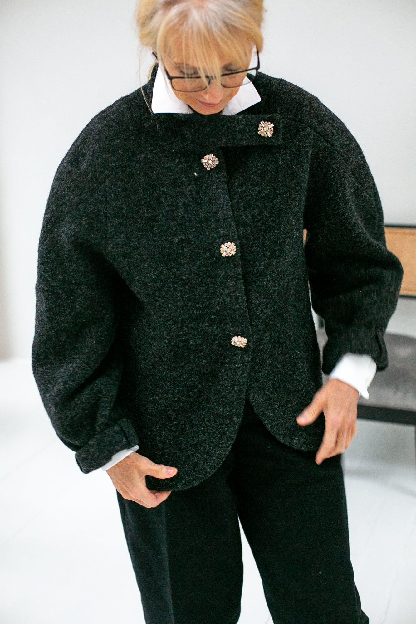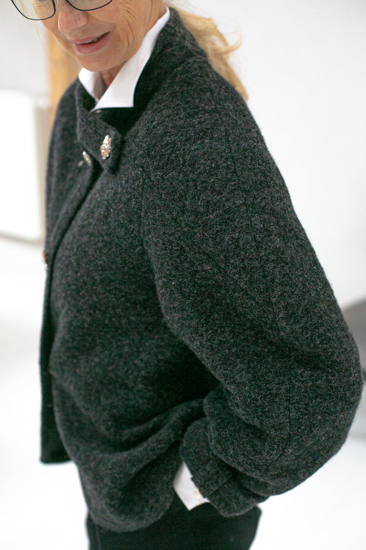 ARLETTE is a beautiful vintage-inspired cardigan that plays with volume, structure, and refined detailing. Its defining feature are the front closure and the dramatic balloon-shaped sleeves, created through a carefully constructed multi-piece sleeve design that gives the cardigan its signature silhouette. A timeless piece that feels both architectural and wearable. ARLETTE is ideal for statement looks while remaining versatile enough for everyday styling.