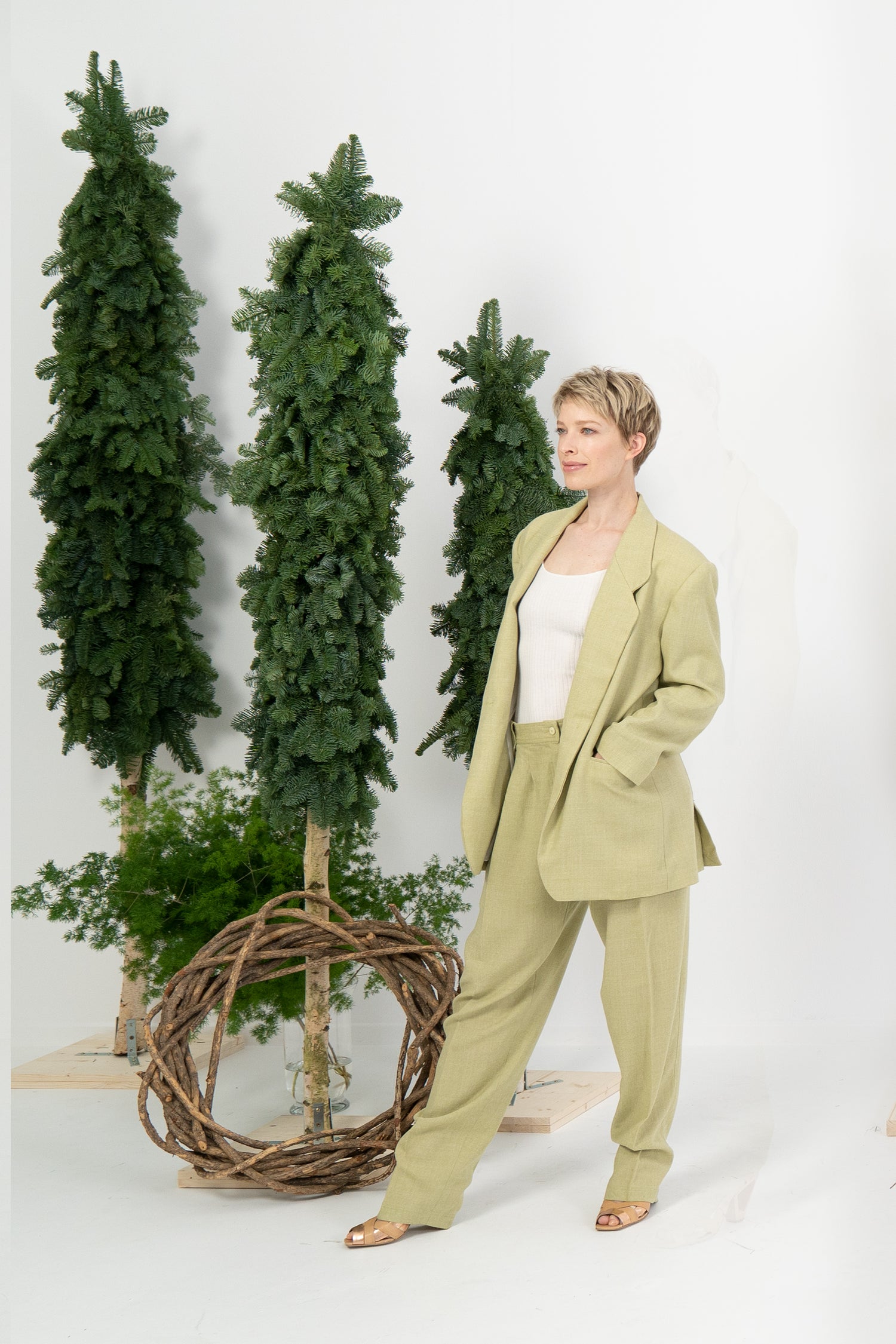 Step into ultimate comfort and style with the 61-3 ESTATE Very Loose Business Pants. These trousers are designed to embrace the oversized trend, offering a relaxed, flattering fit that moves effortlessly with your body. Featuring two welt pockets at the back and pleats at the upper waistband, these pants provide both sophistication and comfort. The pleats create a slimming effect, while the loose silhouette ensures ease of movement throughout your day. Whether for business or casual wear, these pants are a stylish and comfortable addition to your wardrobe.
