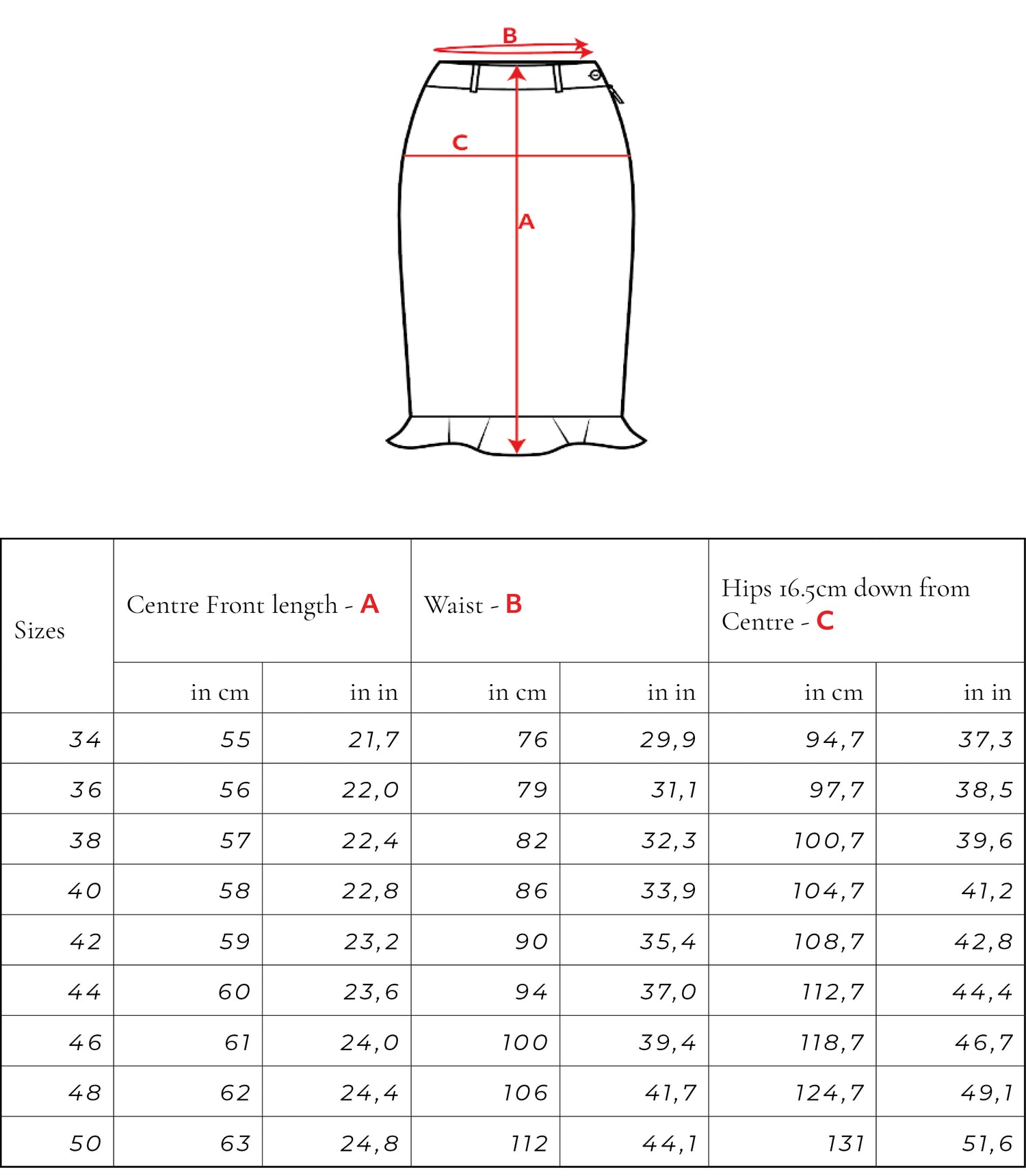 Size chartAs important as the right fabric: the fitting and finding the right size for your body shape. Check out our Size Chart to see which of the included sizes will fit you best.