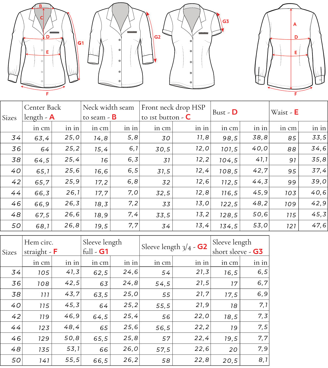 Size chartAs important as the right fabric: the fitting and finding the right size for your body shape. Check out our Size Chart to see which of the included sizes will fit you best.