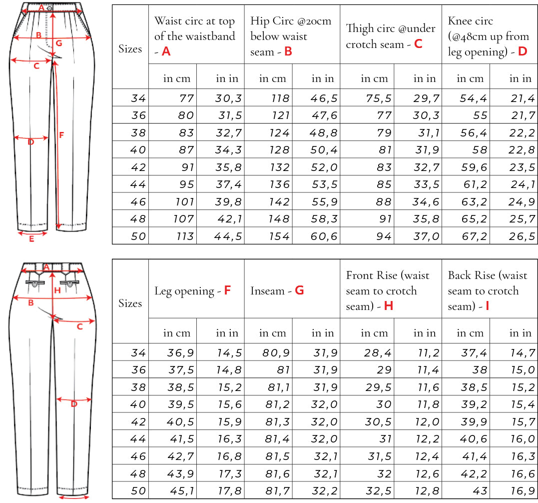 • Waistband Construction: Evi’s tip – adjust the waistband length to your comfort for the perfect fit, especially with pleated garments.