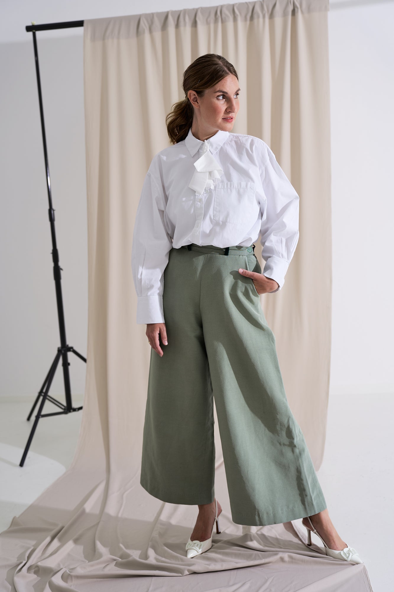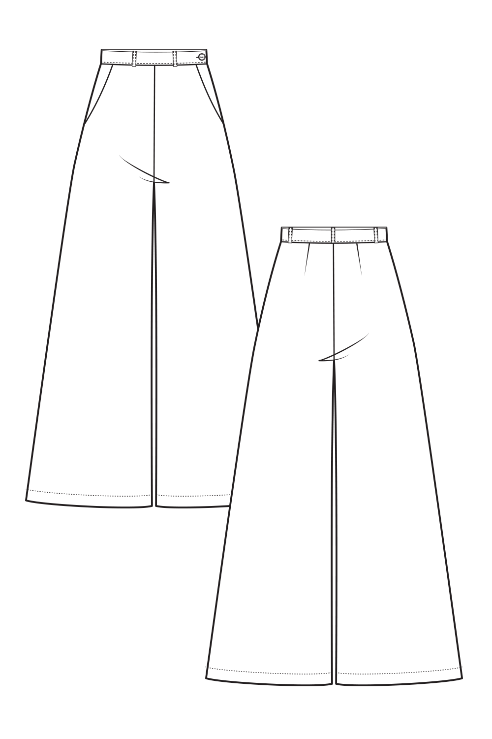 Elevate your style and sewing skills with our 46-1 Palazzo Pants digital sewing pattern! These chic, elegant palazzo pants feature slanted pockets and a side zip closure, adding fashion-forward flair to your wardrobe. The palazzo pants are a perfect way to combine elegance and comfort. With a very loose and oversized cut, they will guarantee you a stylish and flattering look for warm summer evenings.