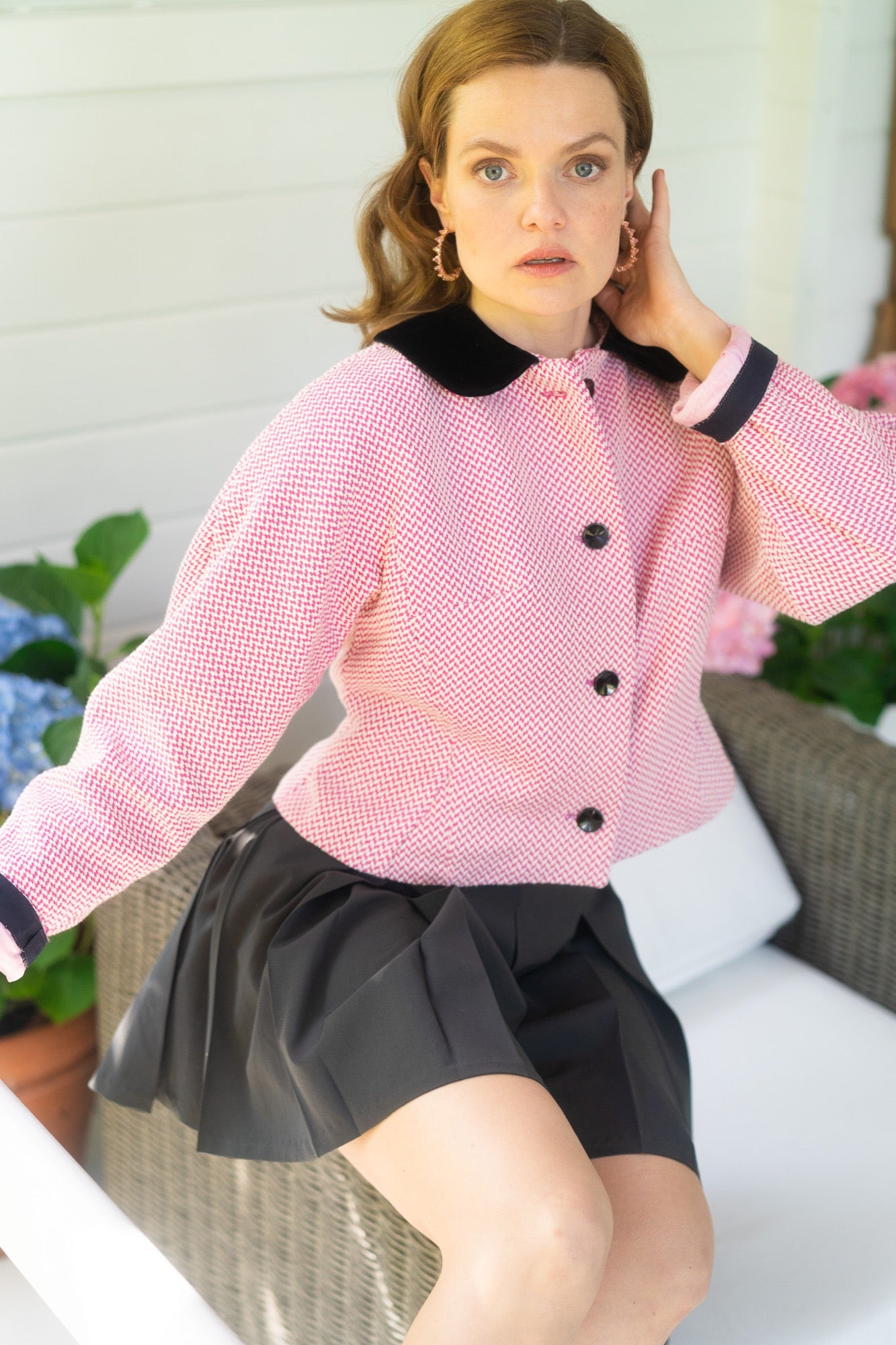 67-6 BLISS Short jacket with cut sleeve, peplum look and velvet collar