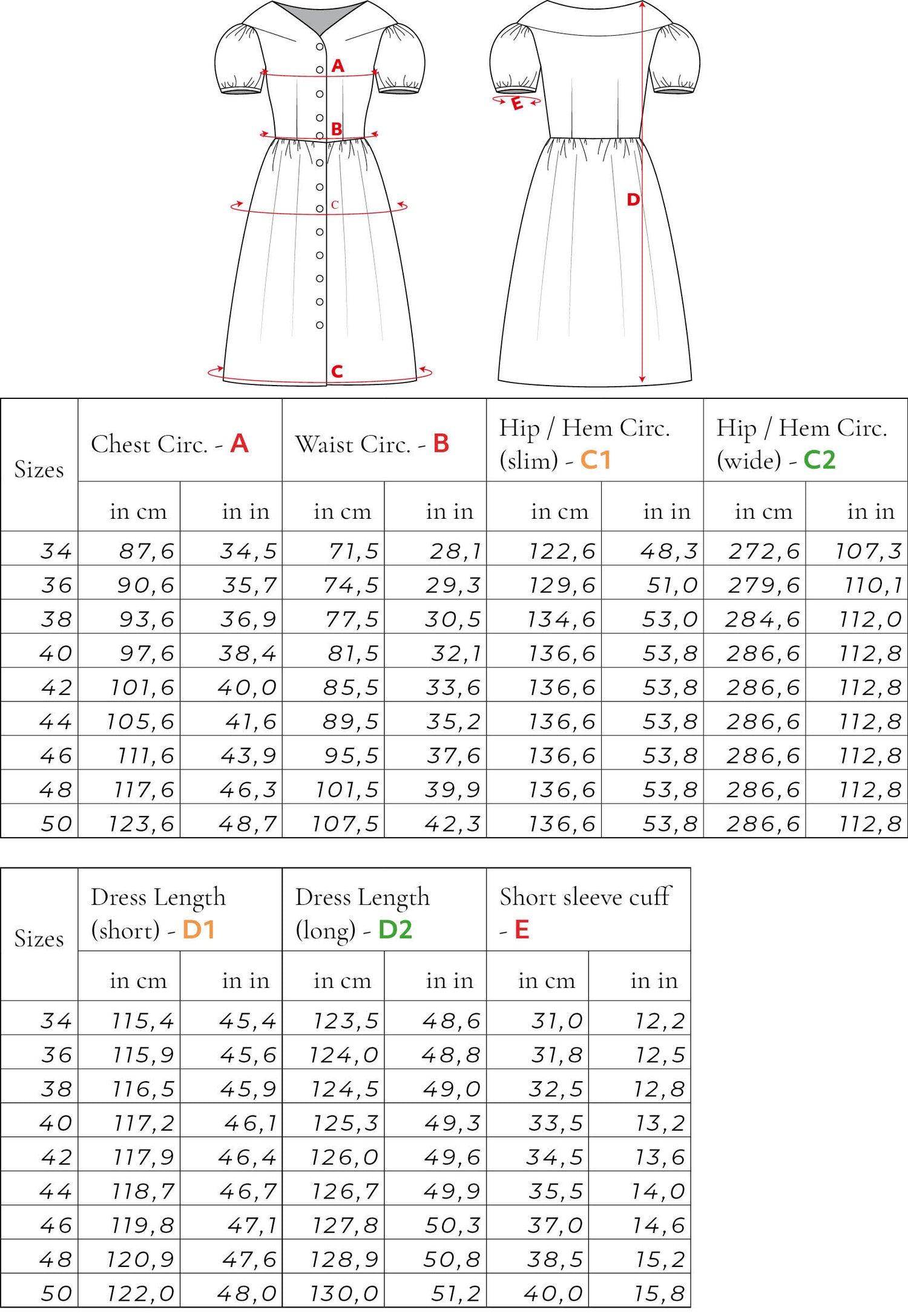 Size Chart for women clothing Size Chart Sizes 34-50 for sisterMAG Patterns