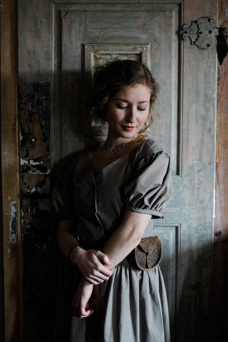 • Gathered Waist: A subtle gather at the waist creates shape while allowing movement.