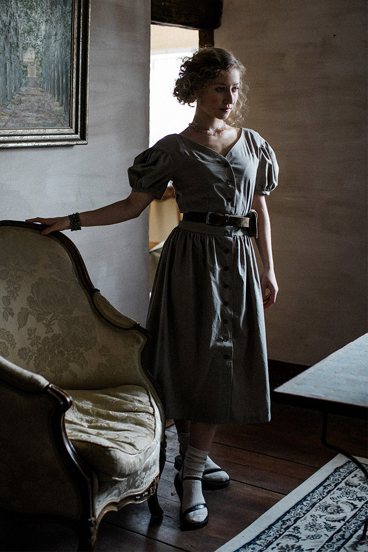 • Button-Down Front: Functional and decorative buttons add charm to the design.