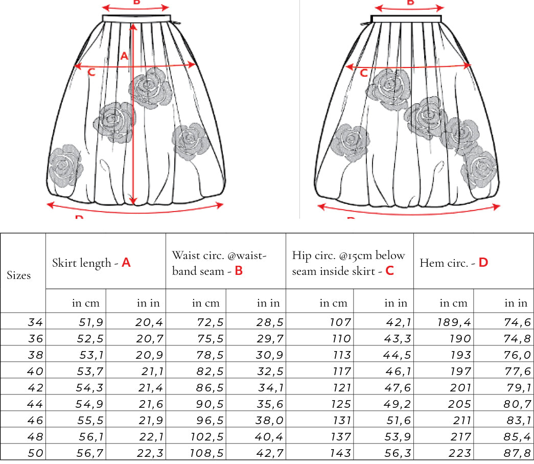 • Layered Design: The skirt is fully lined for added structure and comfort, giving it a luxurious feel.