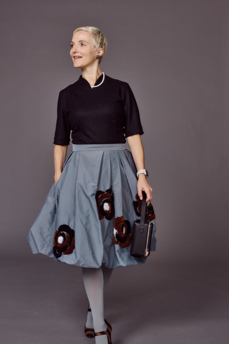 70-9 Balloon / Bubble Skirt with Punchneedle Roses