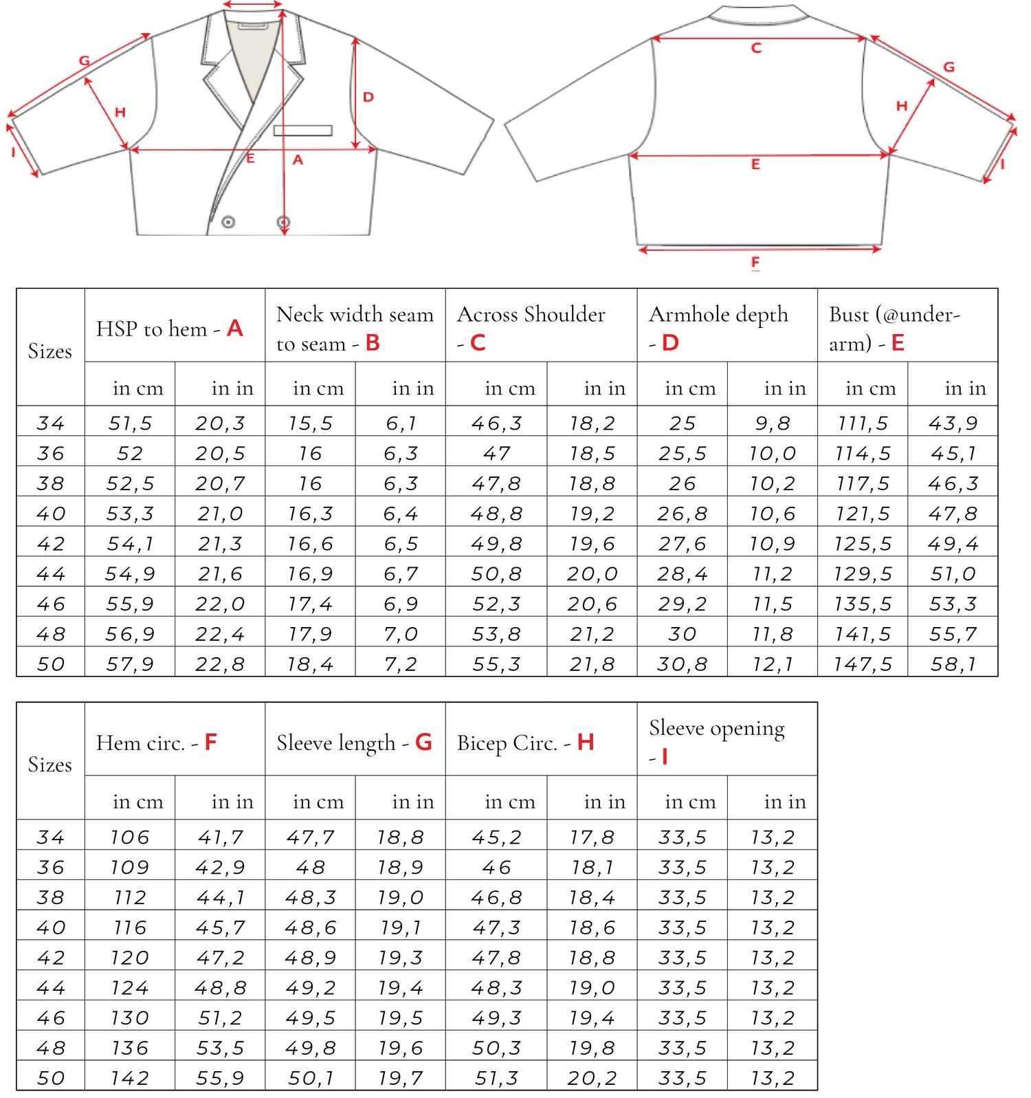 As important as the right fabric: the fitting and finding the right size for your body shape. Check out our Size Chart to see which of the included sizes will fit you best.