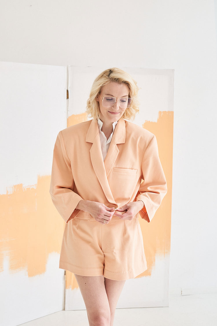 Introducing our standout piece from sisterMAG64: the 64-1 Short Oversized Double-Breasted Jacket, a true statement of style and sophistication. Crafted with wide shoulders for a bold silhouette, this unlined jacket is designed to turn heads wherever you go.