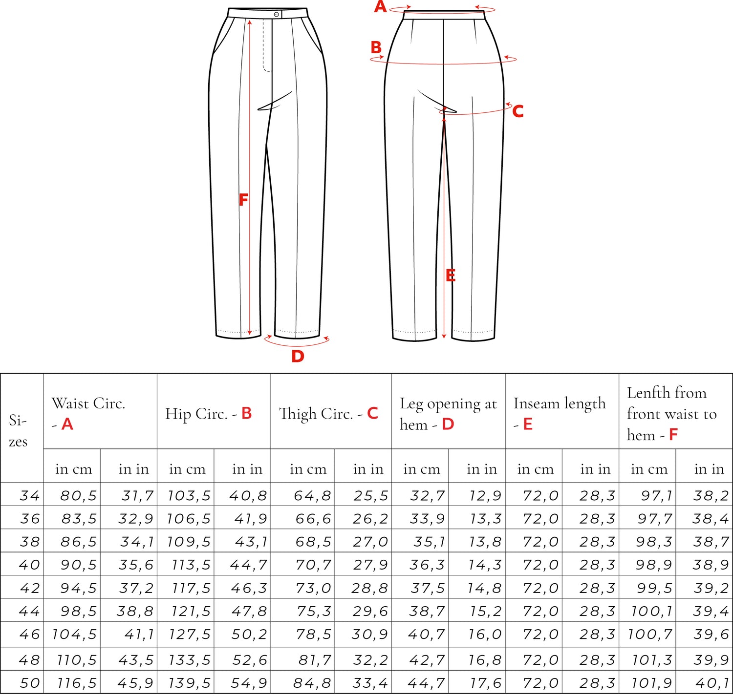 Size Chart for women clothing Size Chart Sizes 34-50 for sisterMAG Patterns