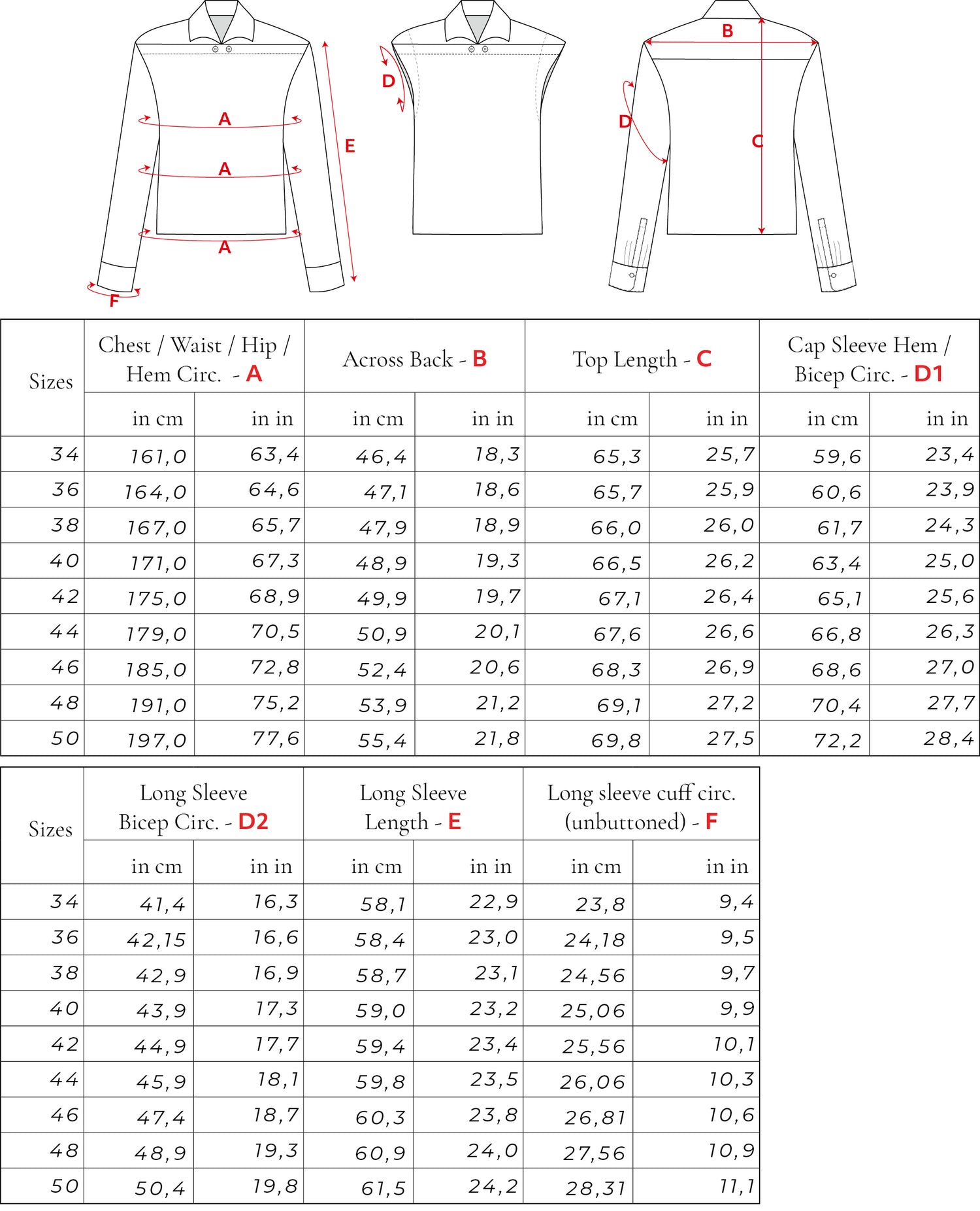 Size chartAs important as the right fabric: the fitting and finding the right size for your body shape. Check out our Size Chart to see which of the included sizes will fit you best.