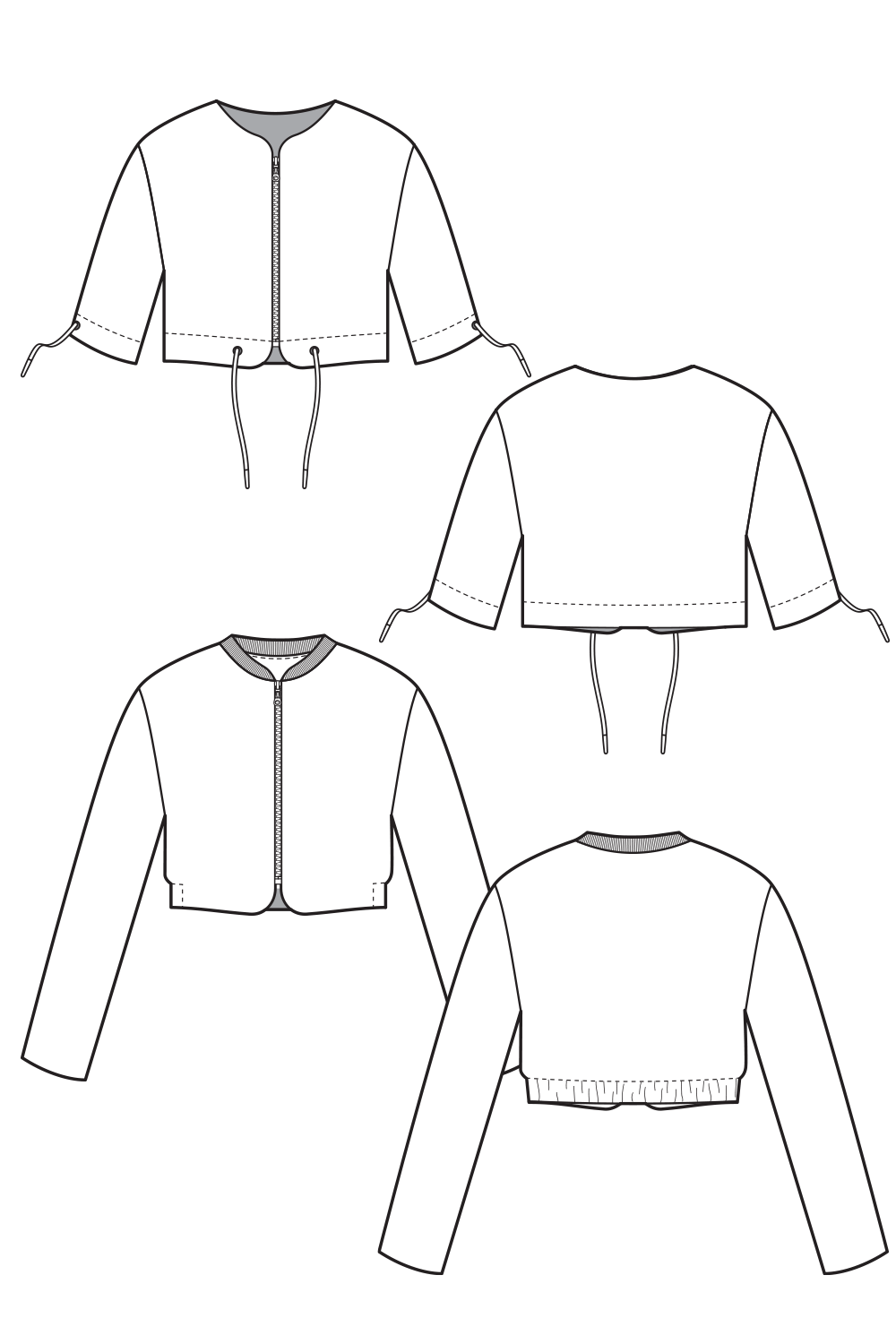 Designed for both practicality and style, this bomber jacket features a short cut, fitting snugly at the waist. The pattern comes with written instructions for every step of the creation process, ensuring an enjoyable sewing experience for crafters of all levels.