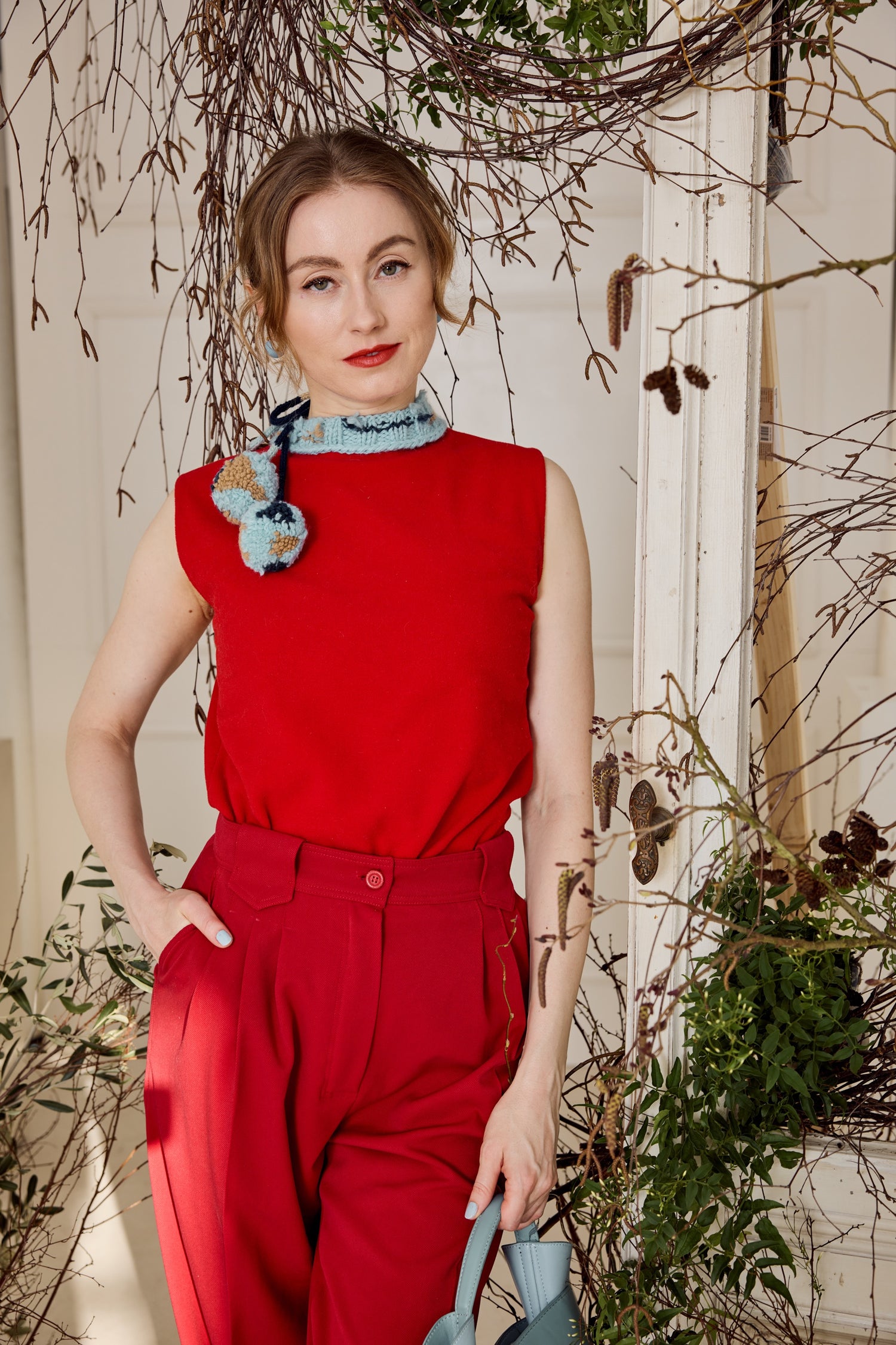 • Pom-pom embellishment: Fun and quirky detail that enhances the playful nature of the top.