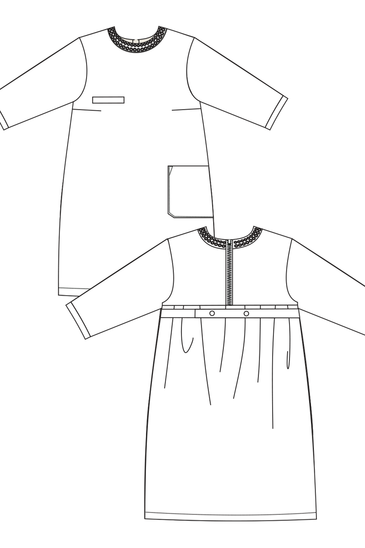 Download the digital pattern in A0, A4, and Letter sizes and craft your own chic 62-5 GLEAM Straight Dress today!