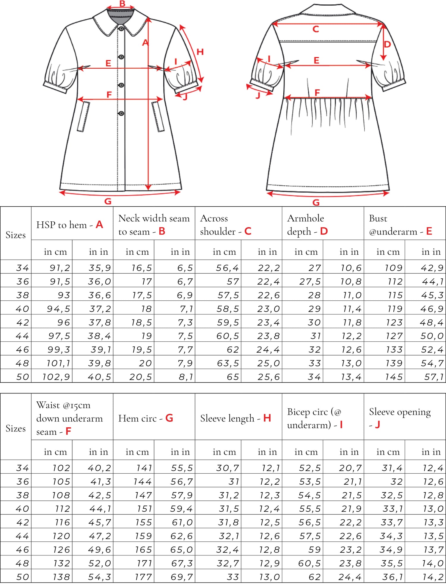 Size Chart for women clothing Size Chart Sizes 34-50 for sisterMAG Patterns