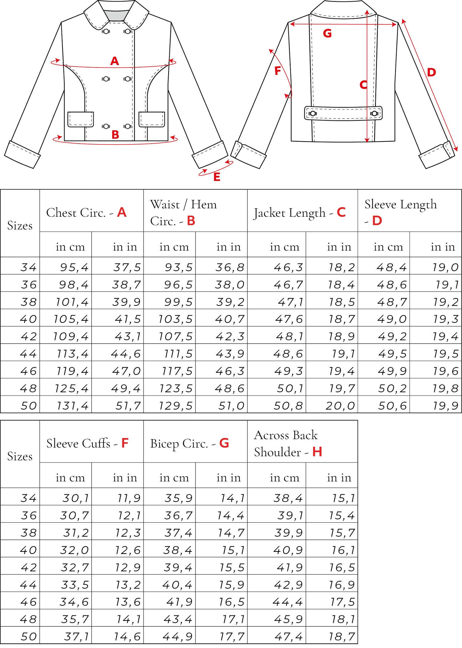 Size chartAs important as the right fabric: the fitting and finding the right size for your body shape. Check out our Size Chart to see which of the included sizes will fit you best.