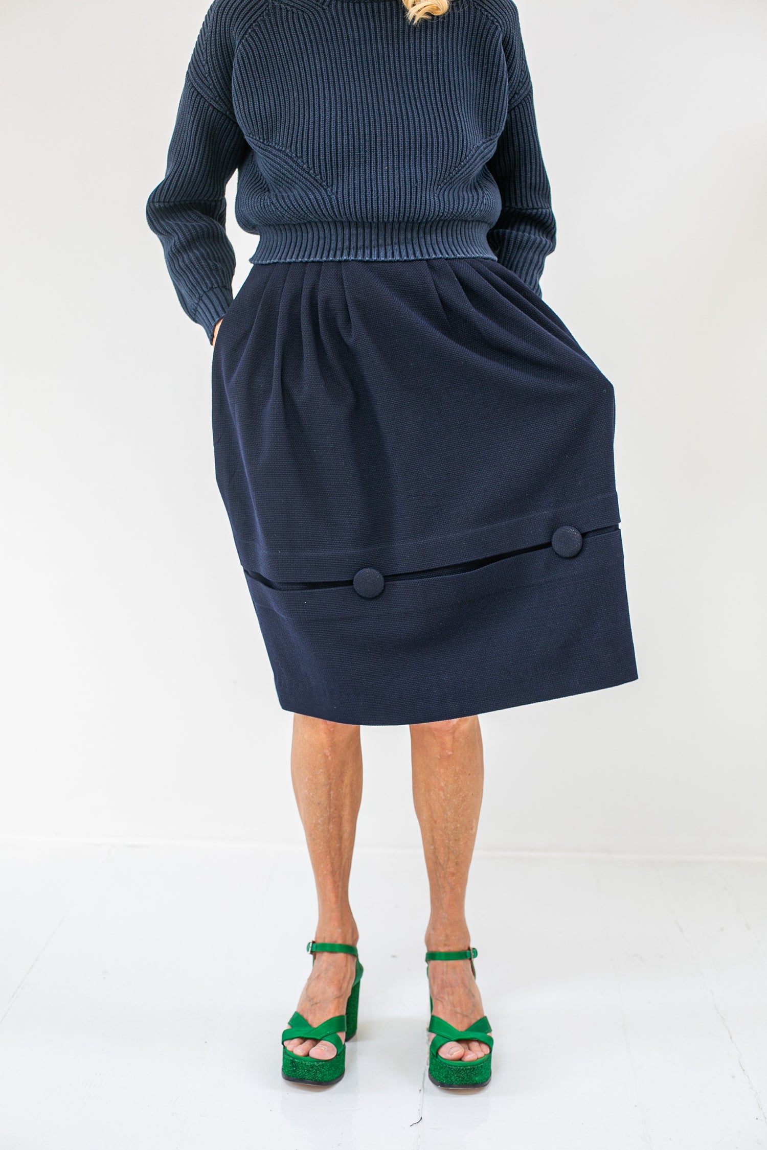 The 70-31 AURA Skirt is a sophisticated statement piece with a softly ballooned silhouette and cleverly sewn-in pleats – perfect to utilize the balloon silhouette but feels a little more grown-up. Designed to play with shape and movement, it combines sculptural structure with everyday elegance. Whether you pair it with a simple blouse or a statement top, this skirt will elevate any outfit with its unique silhouette and craftsmanship-focused construction.