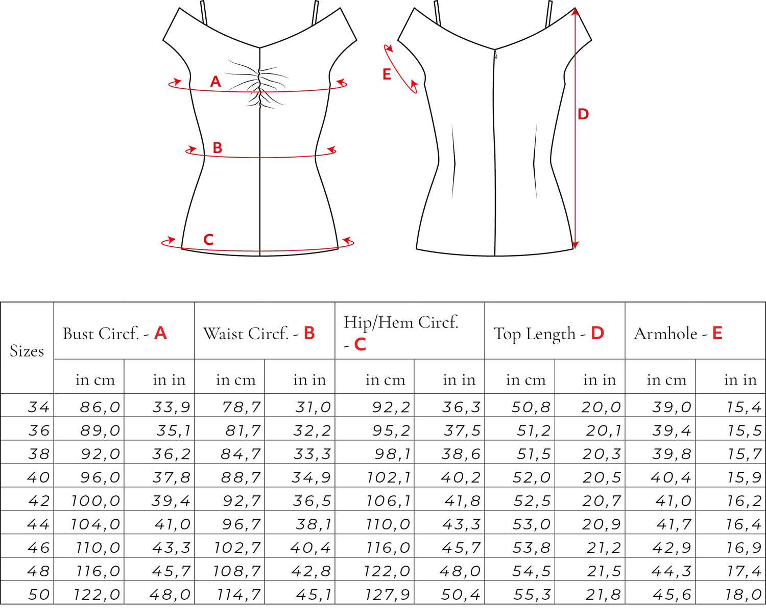 Size chartAs important as the right fabric: the fitting and finding the right size for your body shape. Check out our Size Chart to see which of the included sizes will fit you best.