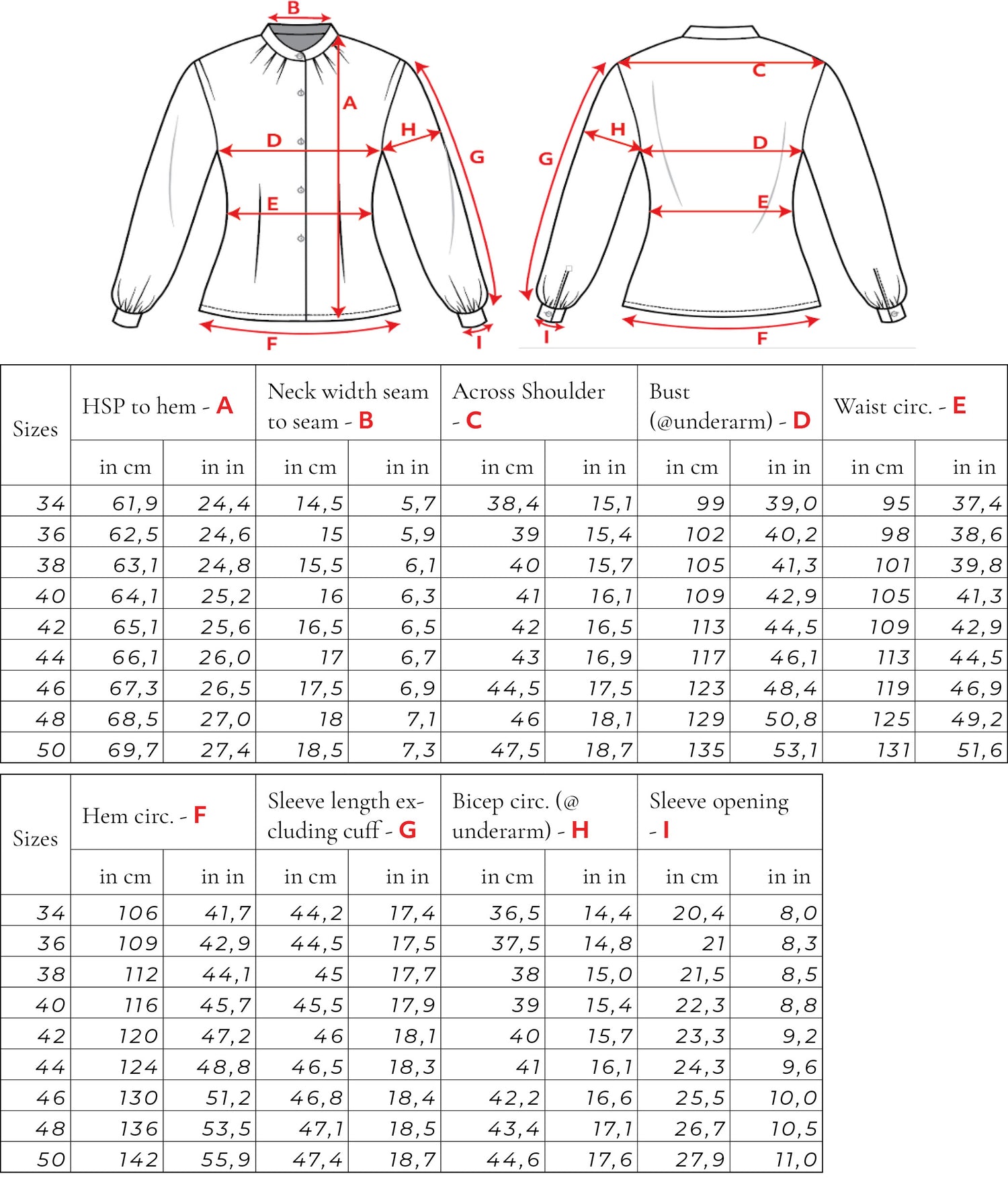 Size Chart for women clothing Size Chart Sizes 34-50 for sisterMAG Patterns