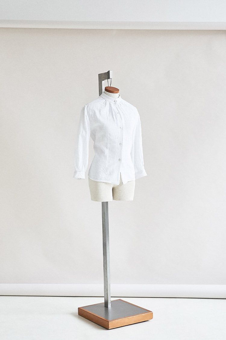 A softly shaped stand collar that can be worn open or buttoned for a more classic look.