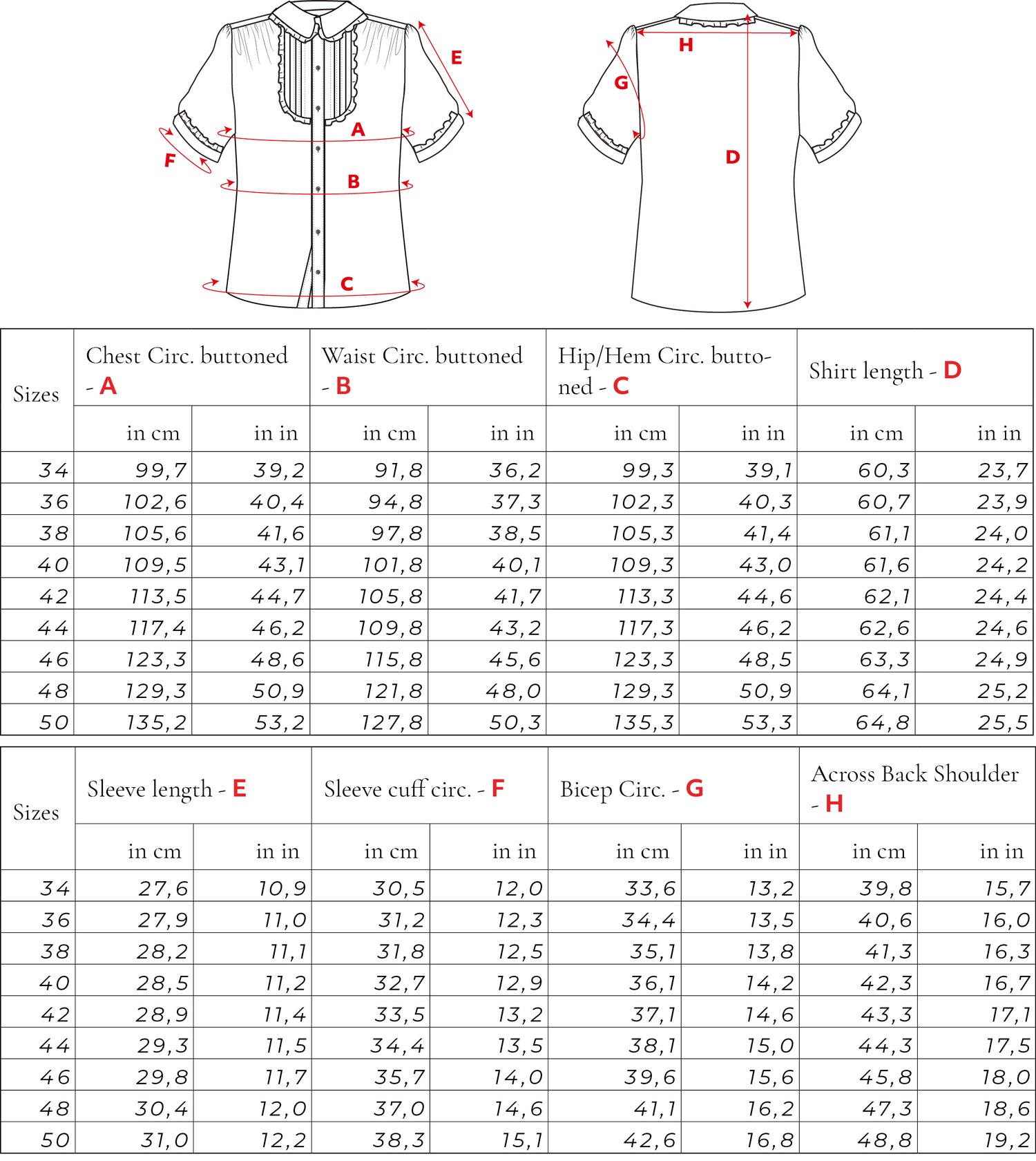 As important as the right fabric: the fitting and finding the right size for your body shape. Check out our Size Chart to see which of the included sizes will fit you best.