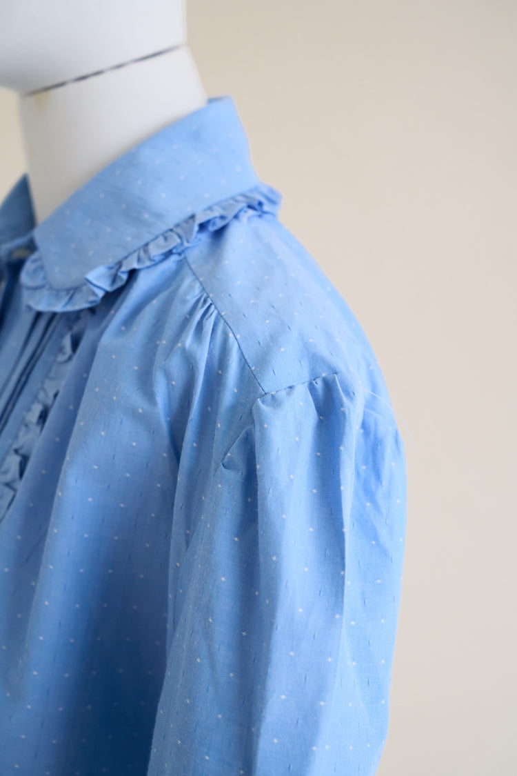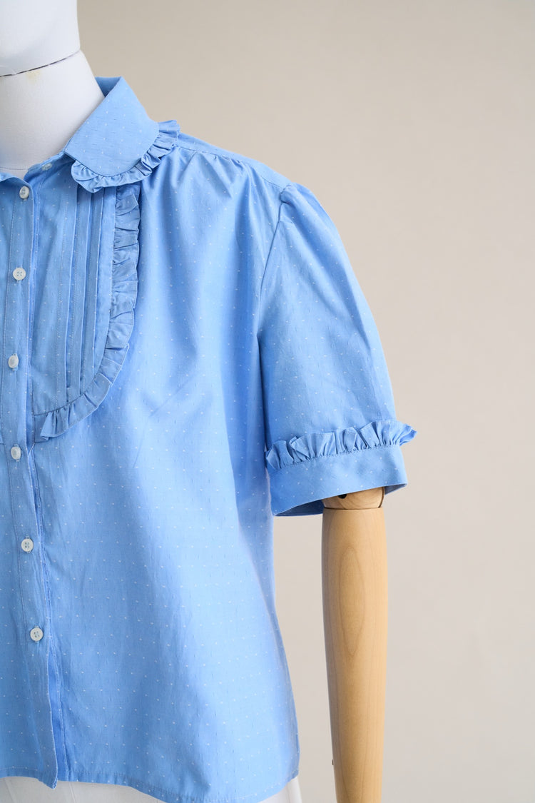 • Short Puff Sleeves: Gathered at the shoulder and cuff for a soft, feminine silhouette, also finished with ruffles at the sleeve band