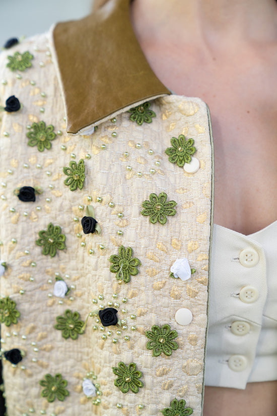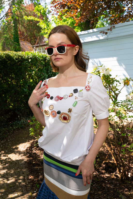 67-5 Blouse with rectangular neckline & embroidered necklace- Regular price