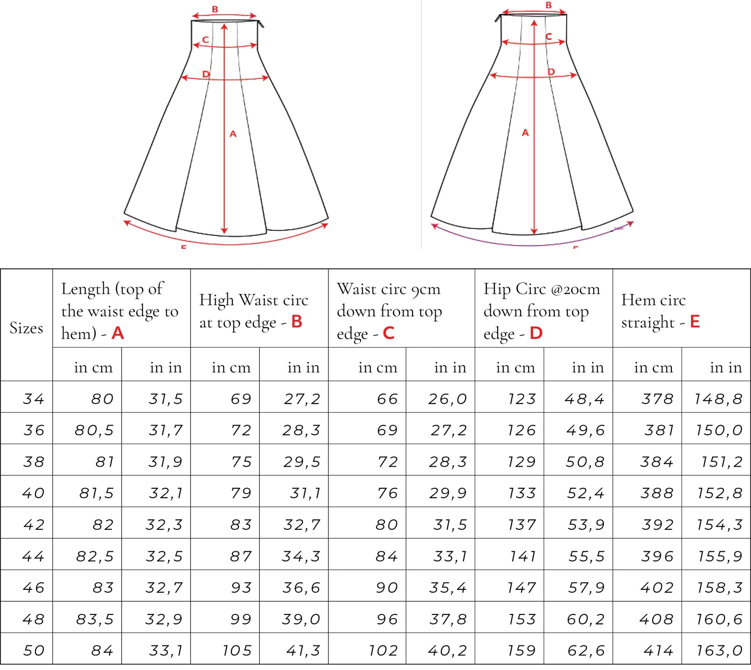 Please find the final measurements of the garment in this table. The measurements can also be found in the instruction booklet.