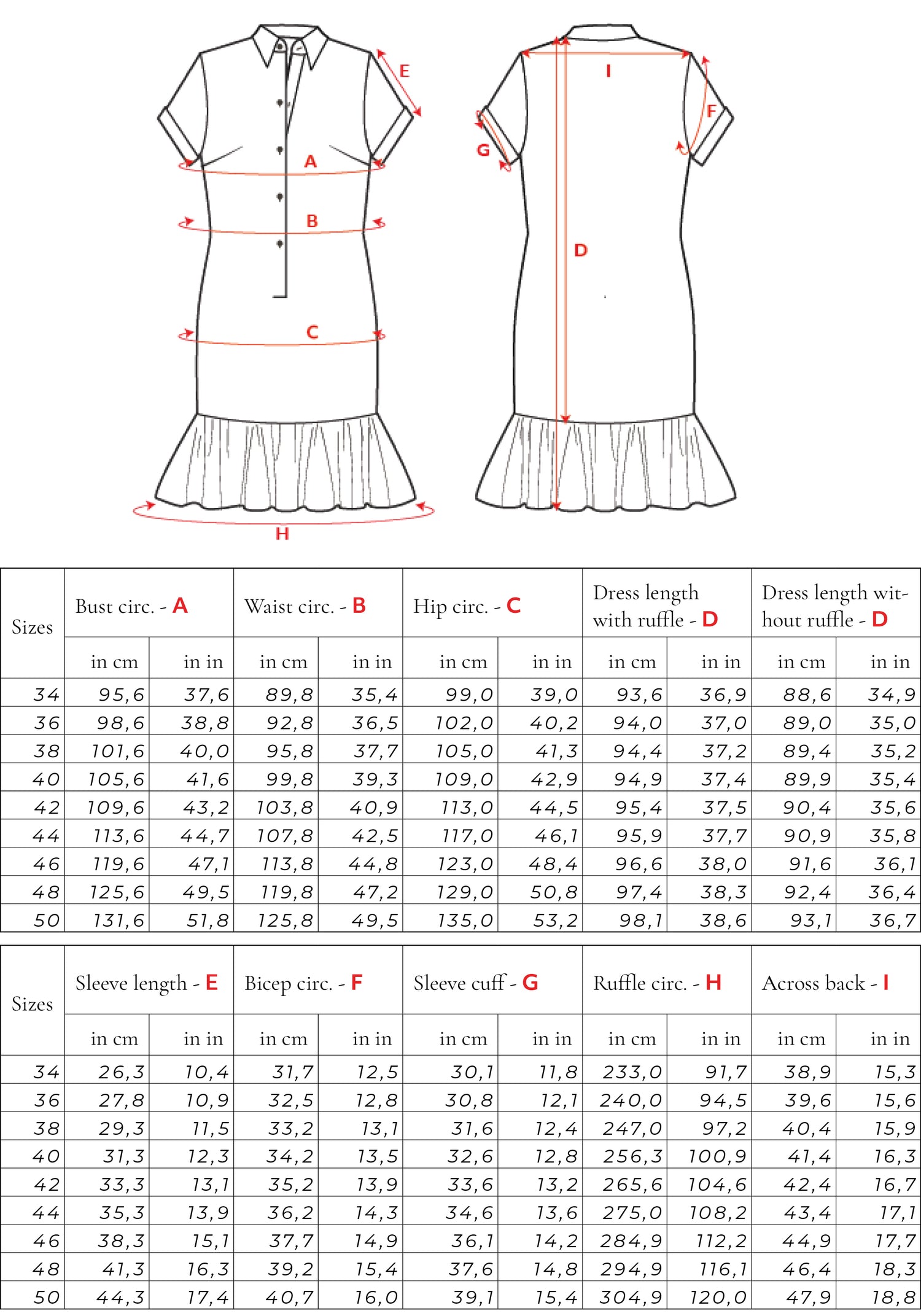 Size Chart for women clothing Size Chart Sizes 34-50 for sisterMAG Patterns