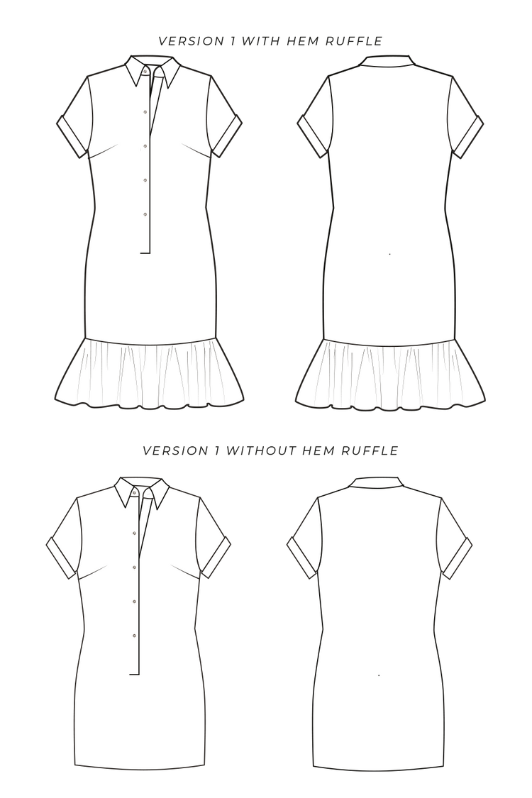 The fabrics should be washed according to the manufacturer's recommendations before cutting, so that the finished dress does not shrink on the first wash. If you are using fabrics with a strong dyeing effect together with a white collar, it is advisable to sew the collar separately for unbuttoning.