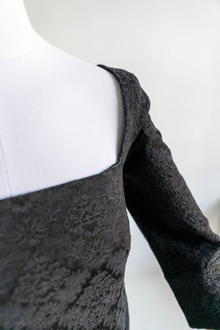 But that's not all – we've gone above and beyond to ensure every aspect of this dress is as delightful as can be. Darts in the sleeve cap create an adorable ruffle effect, adding a playful touch to your ensemble. Small shoulder polsters accentuate your shoulders, providing a subtle yet impactful silhouette.