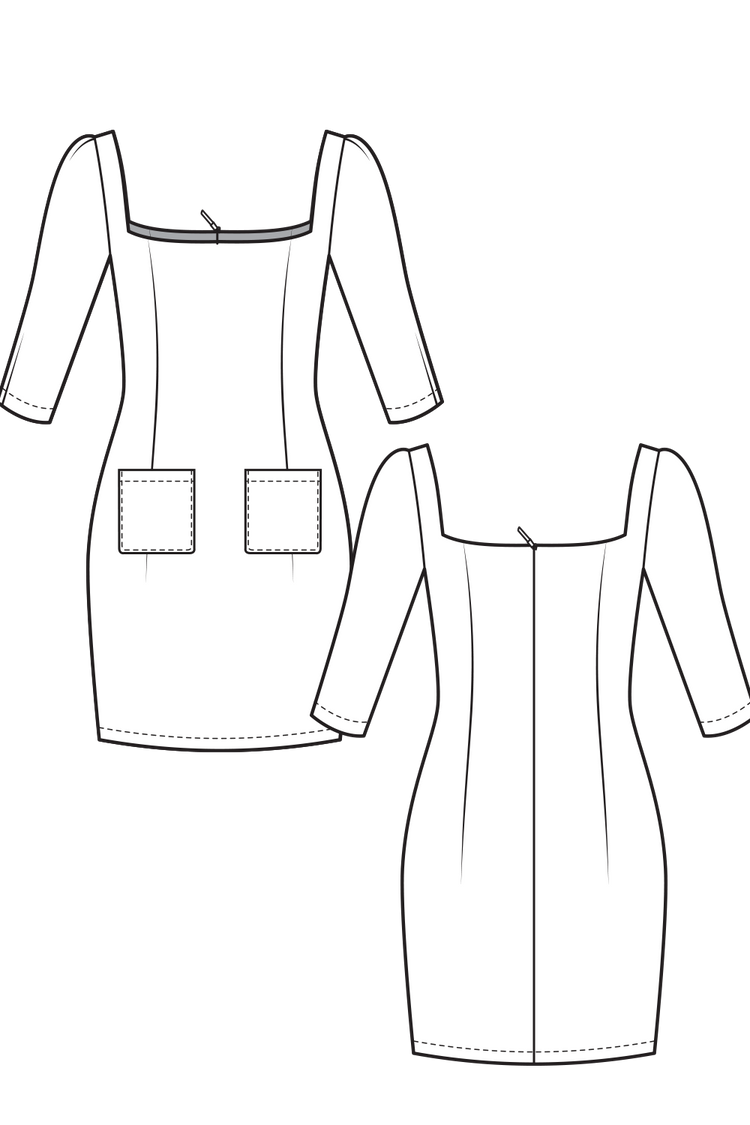 08-5 Mini dress with rectangular neckline and patch pockets