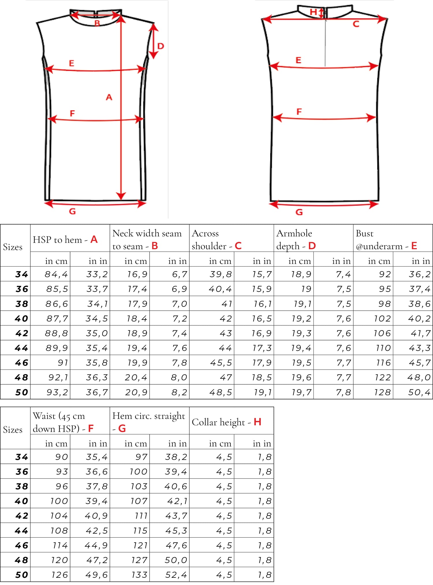 Size chartAs important as the right fabric: the fitting and finding the right size for your body shape. Check out our Size Chart to see which of the included sizes will fit you best.