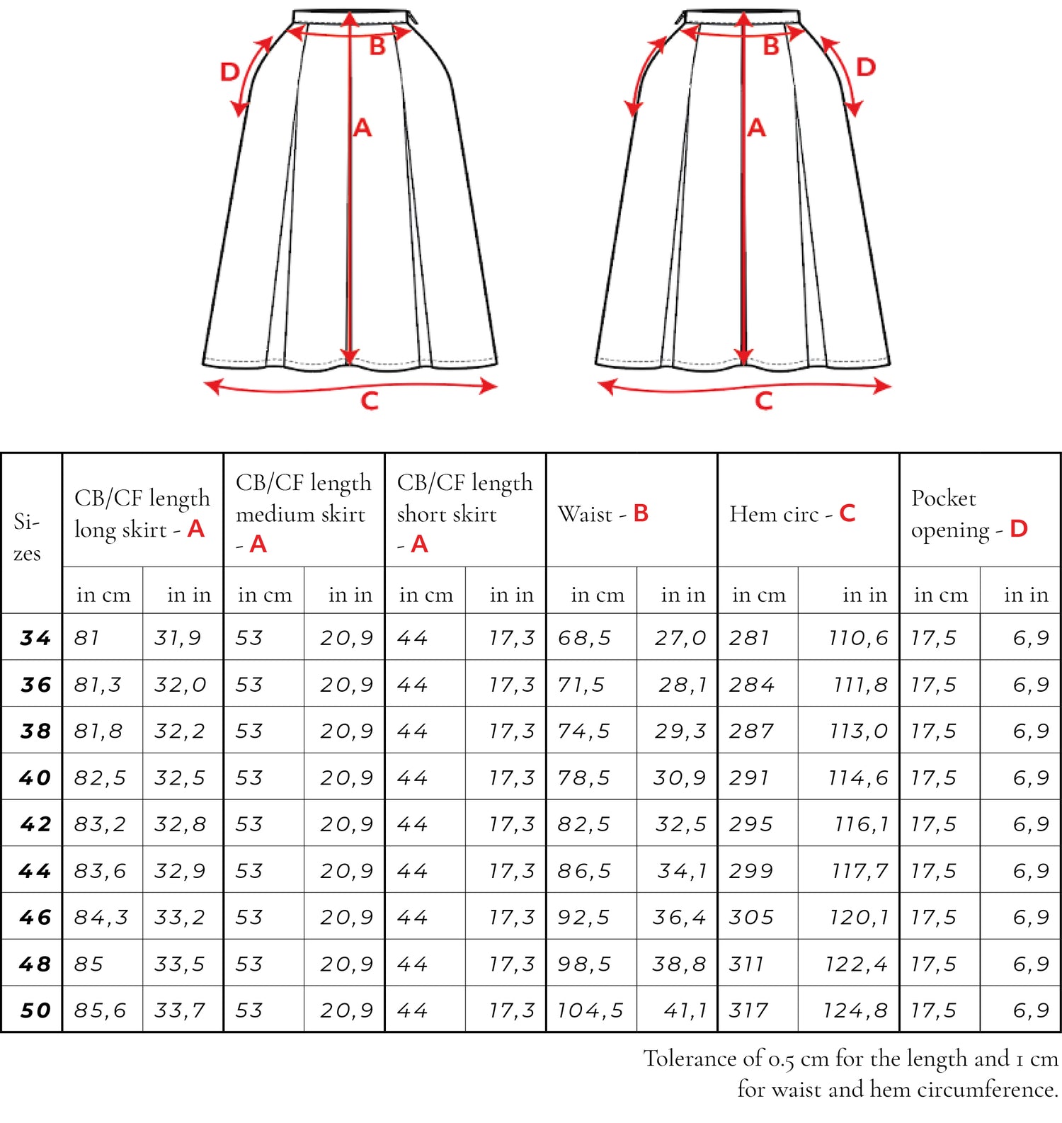Please find the final measurements of the garment in this table. The measurements can also be found in the instruction booklet.