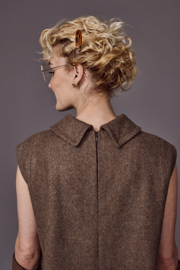 70-10 PULSE Dress Skirt with Lightly Dropped Shoulders and Round Collar