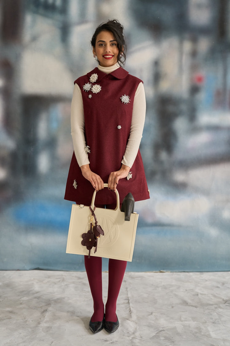 • Rounded Collar: A sweet detail that adds a touch of elegance with its Peter Pan flair.