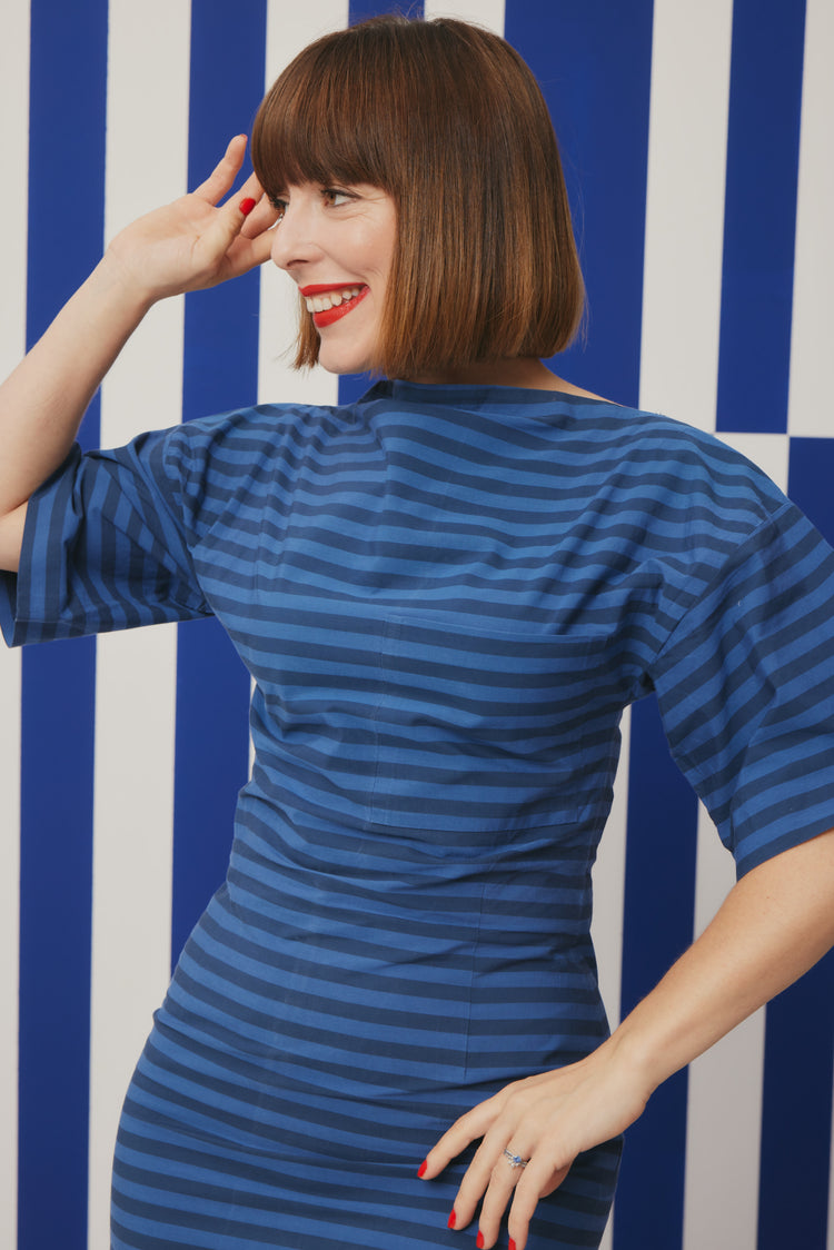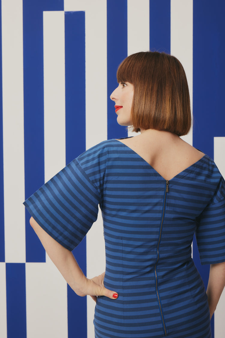 This elegant, figure-hugging dress from sisterMAG Patterns is the perfect example of minimalism with a twist. Designed for woven fabrics, the silhouette features a slim fit, shaped by strategically placed darts and complemented by strikingly wide sleeves. The standout detail is the patch pocket, which adds both function and a touch of modernity. Whether in a monochrome tone or bold print, FRAME is a versatile piece that transitions easily from day to evening.