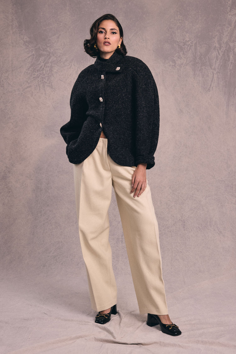 With its combination of structure and softness, OVALO works equally well in heavier fabrics for a statement look or in refined textiles for an elegant everyday wardrobe piece.