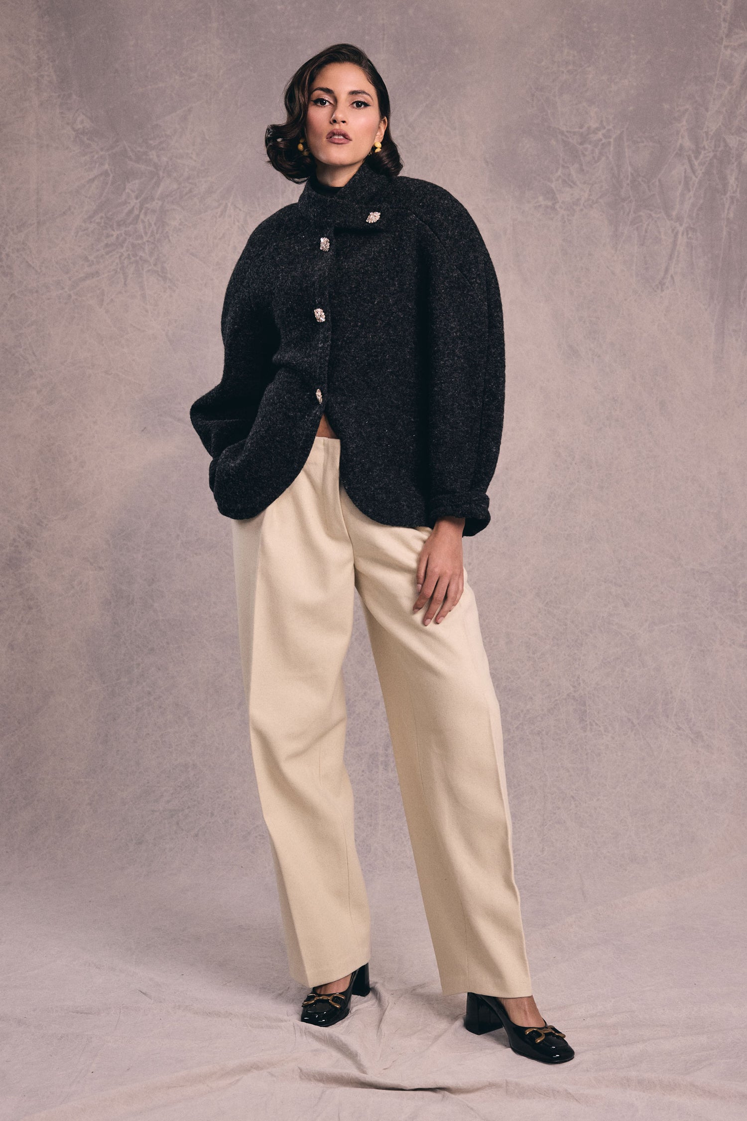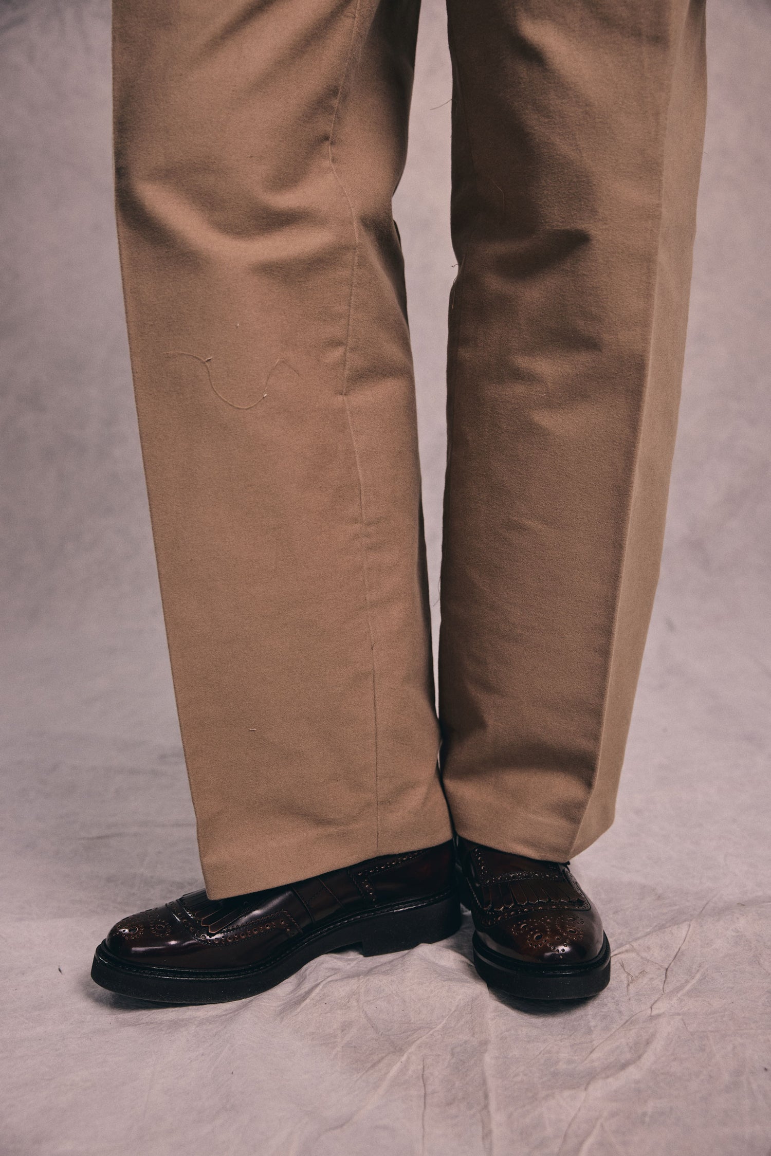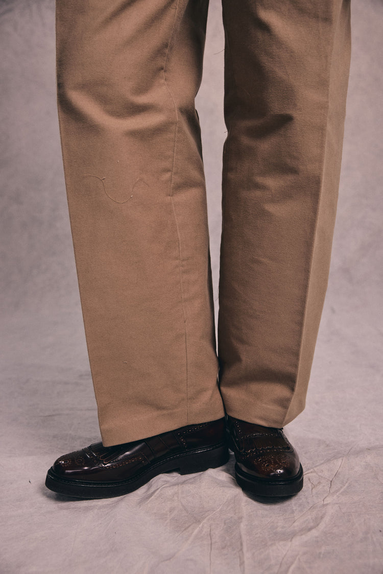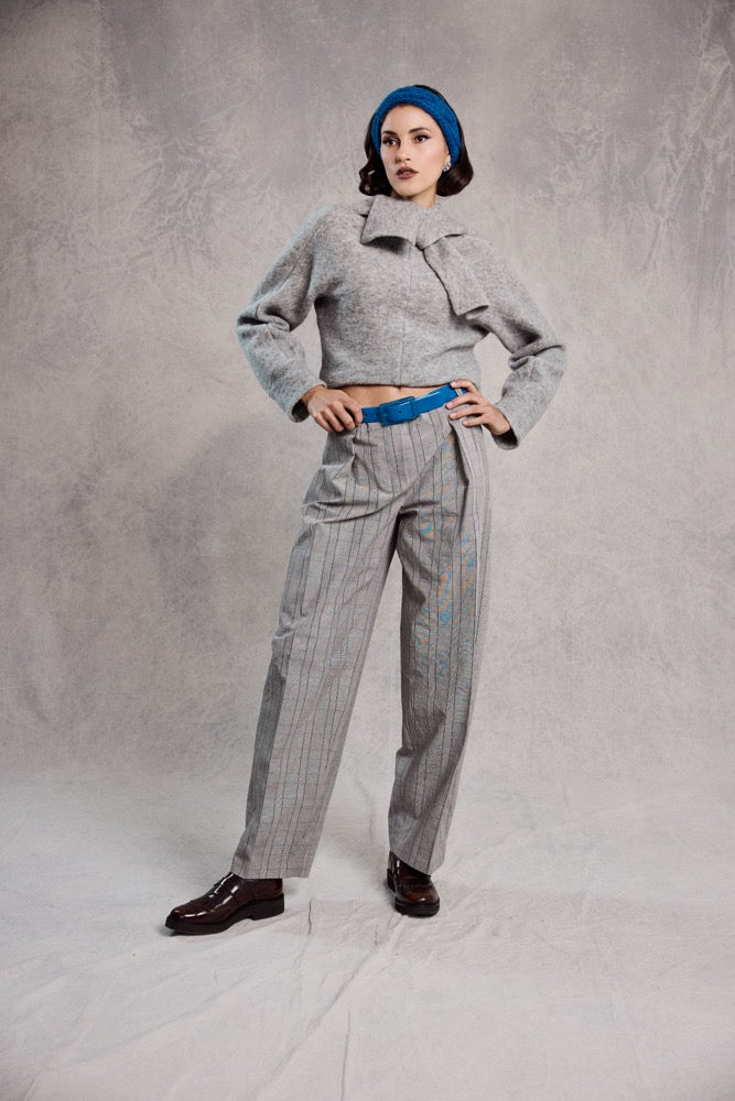 OVALO is a sculptural wide-leg trouser pattern that reinterprets classic tailoring with a clean, modern construction. Designed without a separate waistband, the upper edge is finished with inner facings, creating a smooth silhouette that sits beautifully at the waist. The generous leg width and pressed front crease give the trousers a strong architectural presence, while refined details such as the back welt pocket and carefully shaped fit elevate the design.