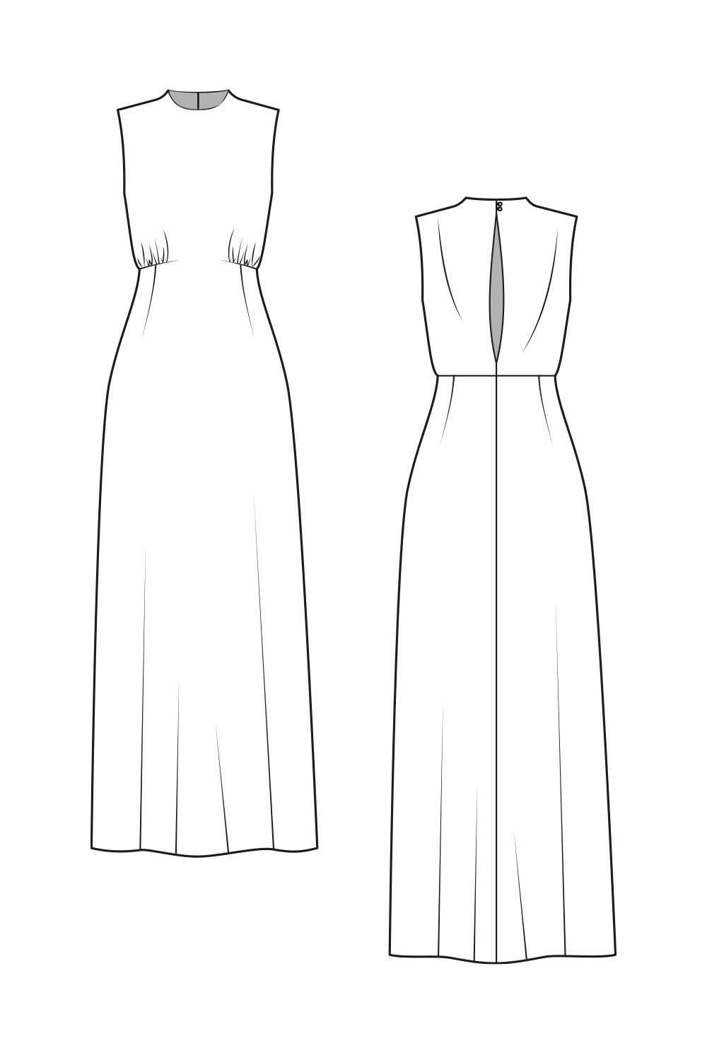 Introducing a show-stopping piece for your special night: the DIY Slender Ball Gown with Back Slit. Crafted for the modern woman with an eye for timeless elegance and a passion for fashion, this elegant design features a slim silhouette, a pleated bodice and an eye-catching back slit. The stunning silhouette ensures you make a statement at any party or event. The zipper accentuates the waist. A classy dress for sewing beginners. Timeless elegance paired with flowing fabric.