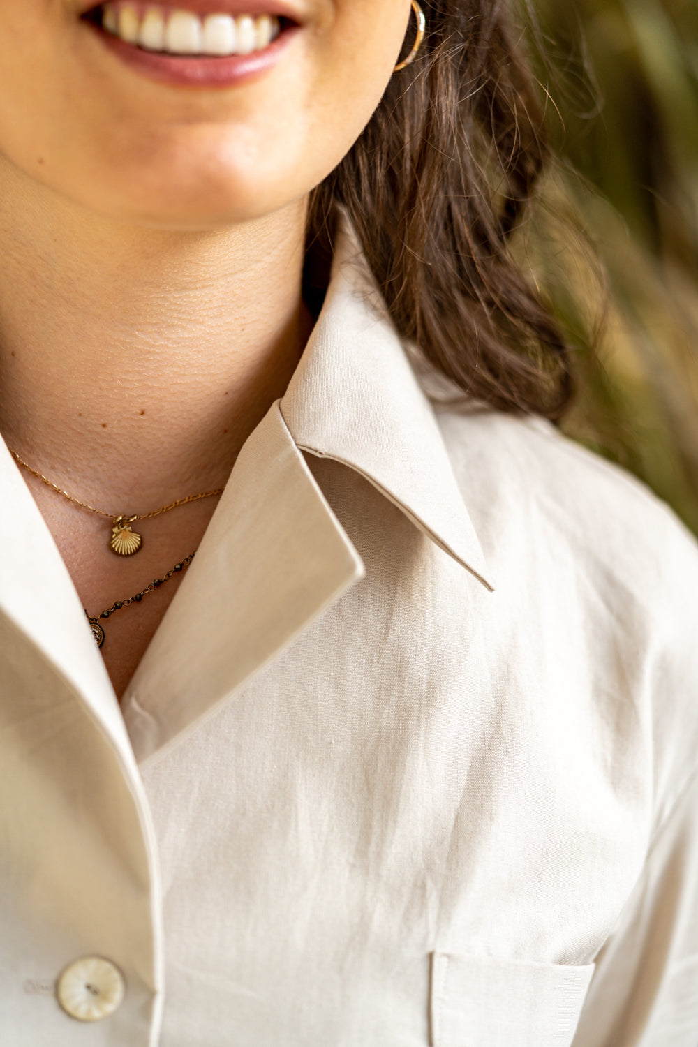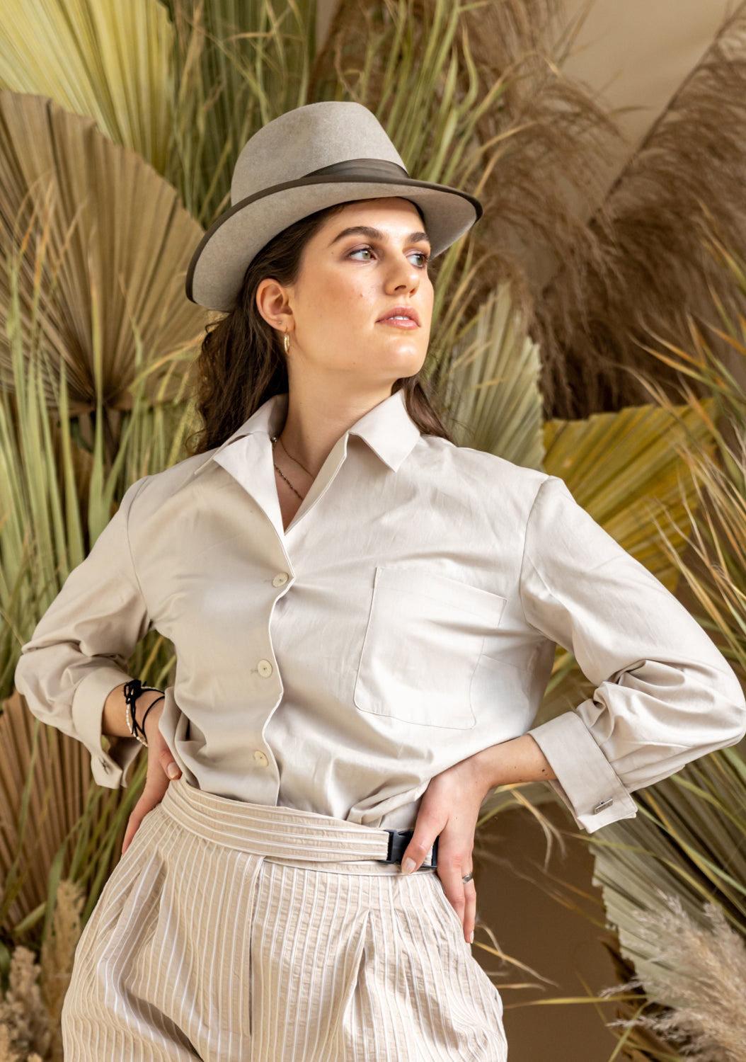 French cuffs are the most elegant form of shirt cuffs on men. Here, with 7/8 sleeves, they are a real eye-catcher for the blouse. With the French cuff, buttonholes take the place of buttons in other cuffs - the sleeves are then connected with cuff knots or cuff links. If you don't have any at home: you can quickly find them at men's outfitters or in any department stores. You can also find wonderful cufflinks in vintage stores - as in our styling example.