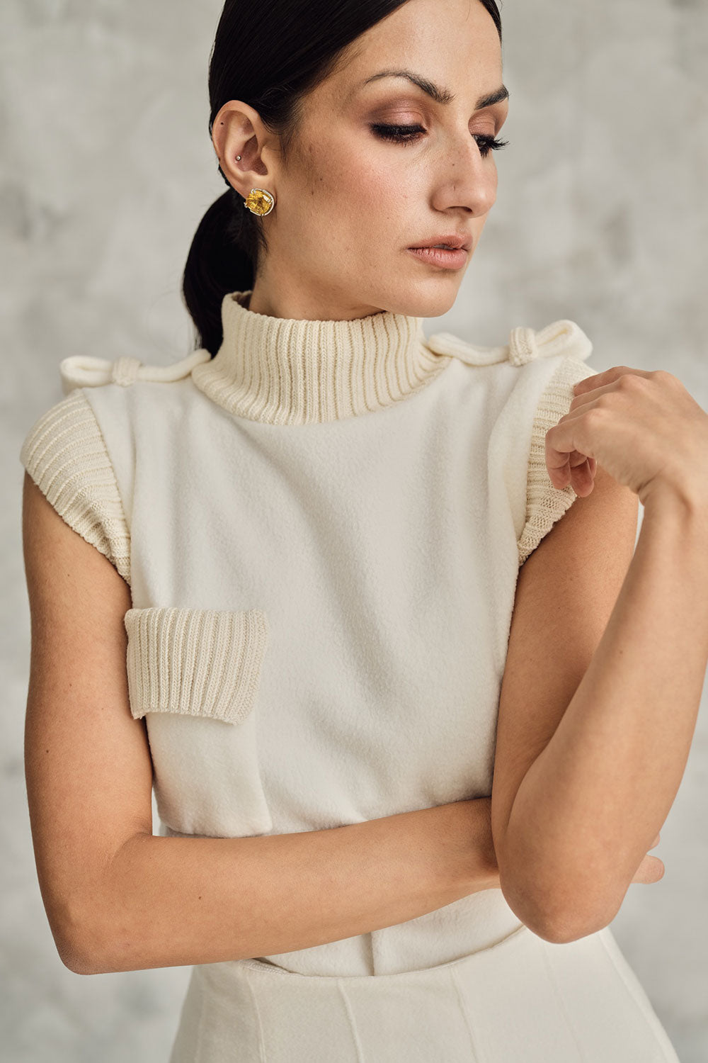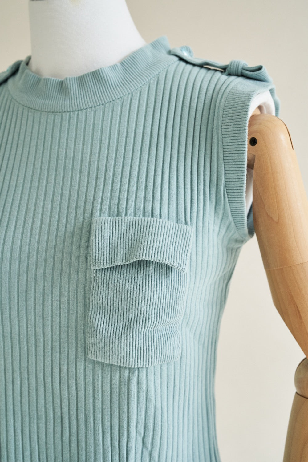 68-6 Knit sleeveless shirt with epaulets and pocket